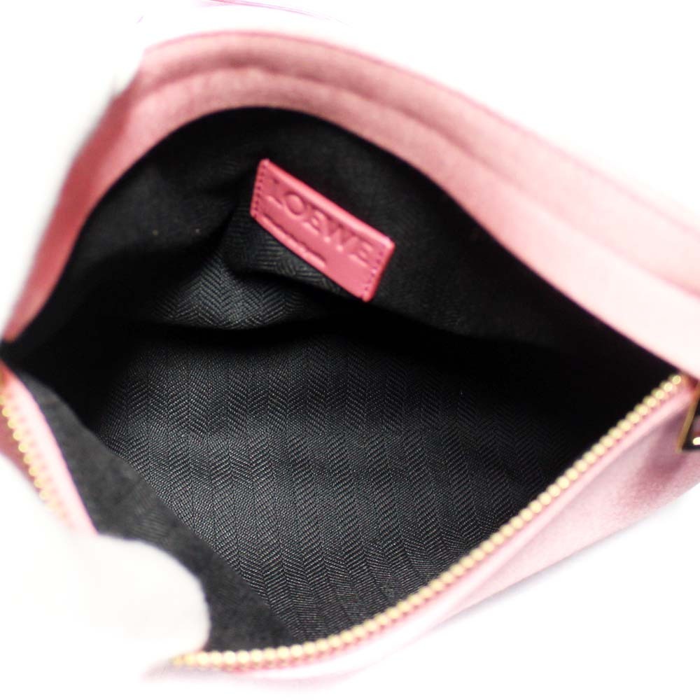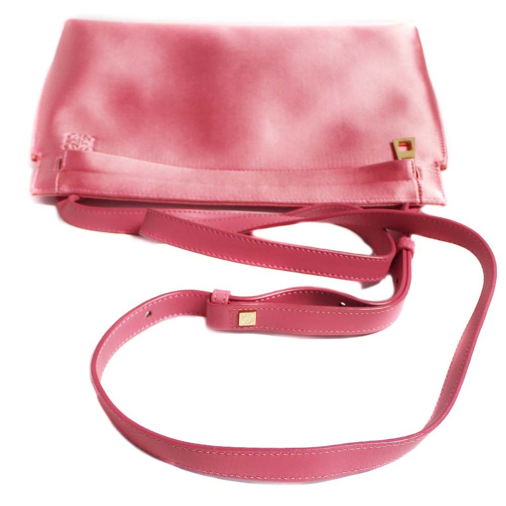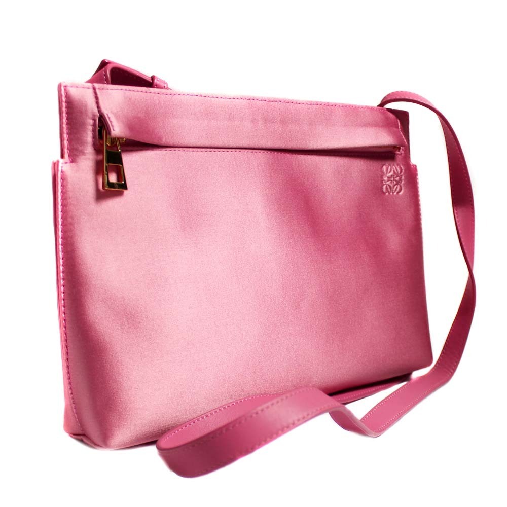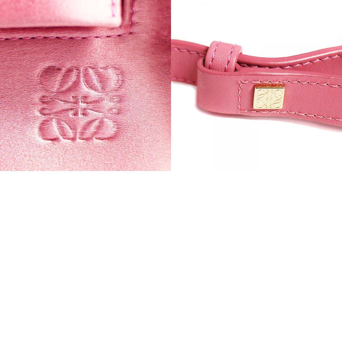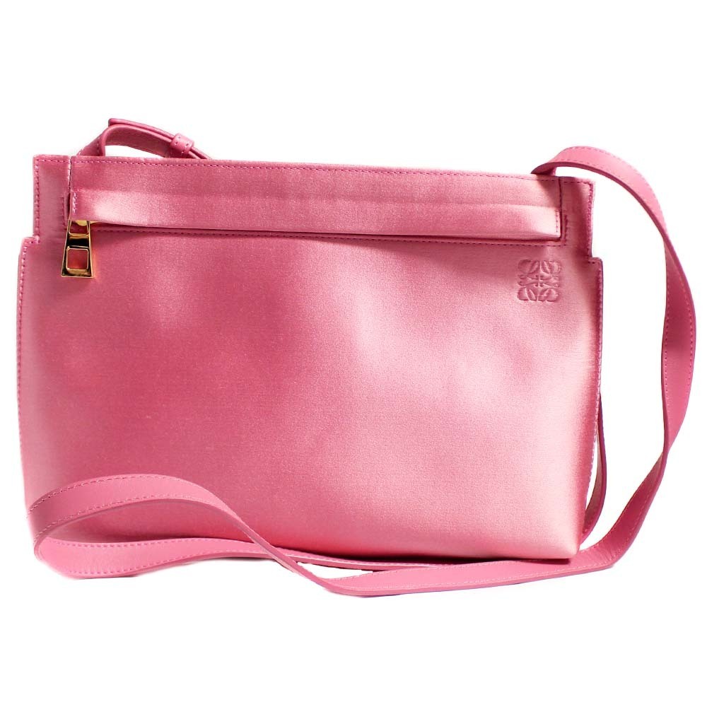 ロエベ ロゴ 斜め掛け ショルダーバッグ レディース サテン ピンク 中古 送料無料 LOEWE