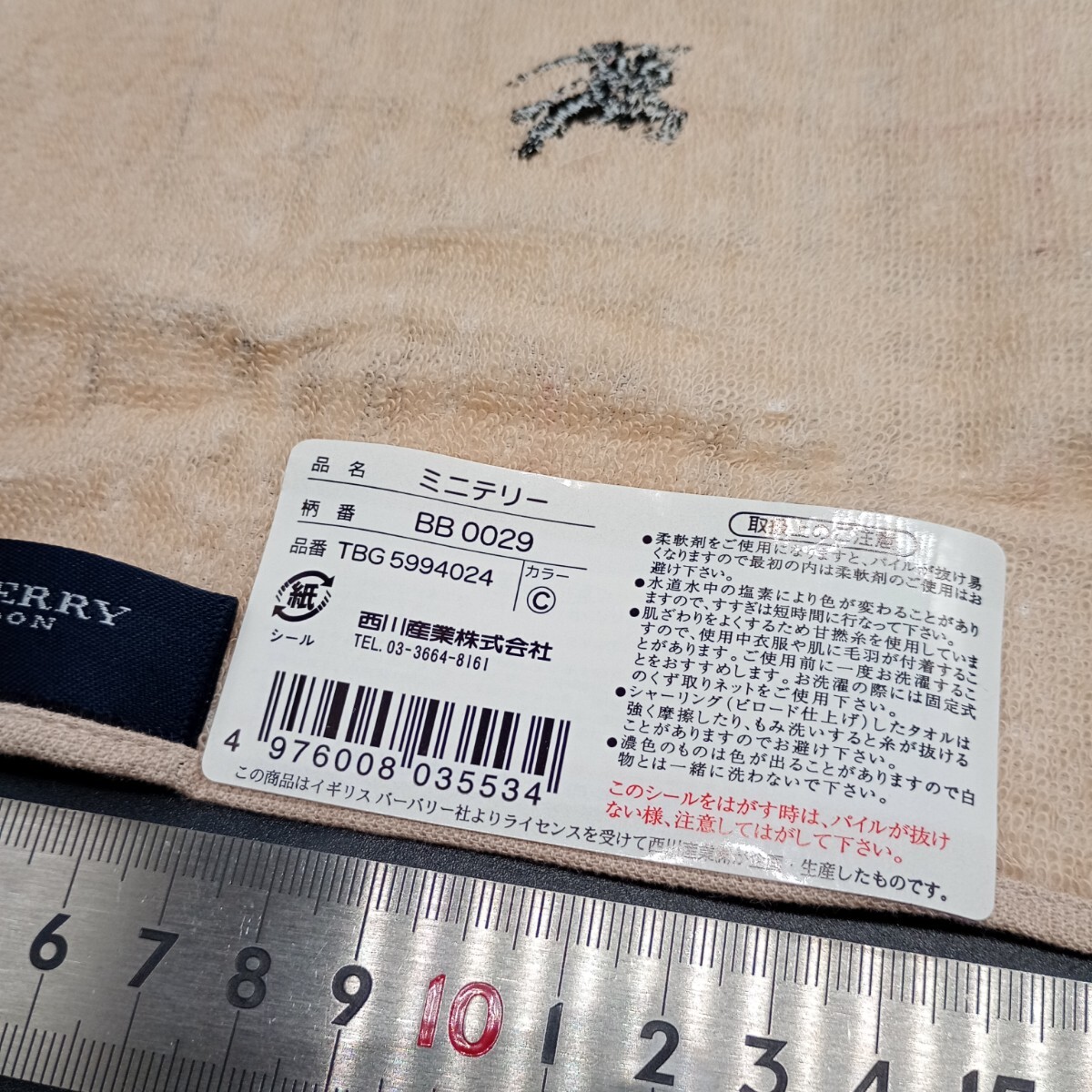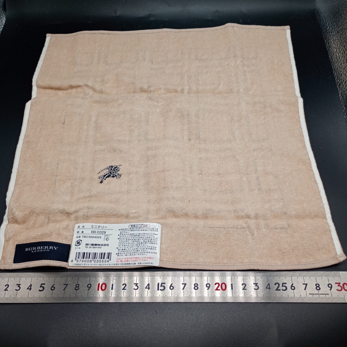 BURBERRY バーバリー ミニテリー タオルハンカチ  ベージュ ブラックホースマーク刺 no.2030