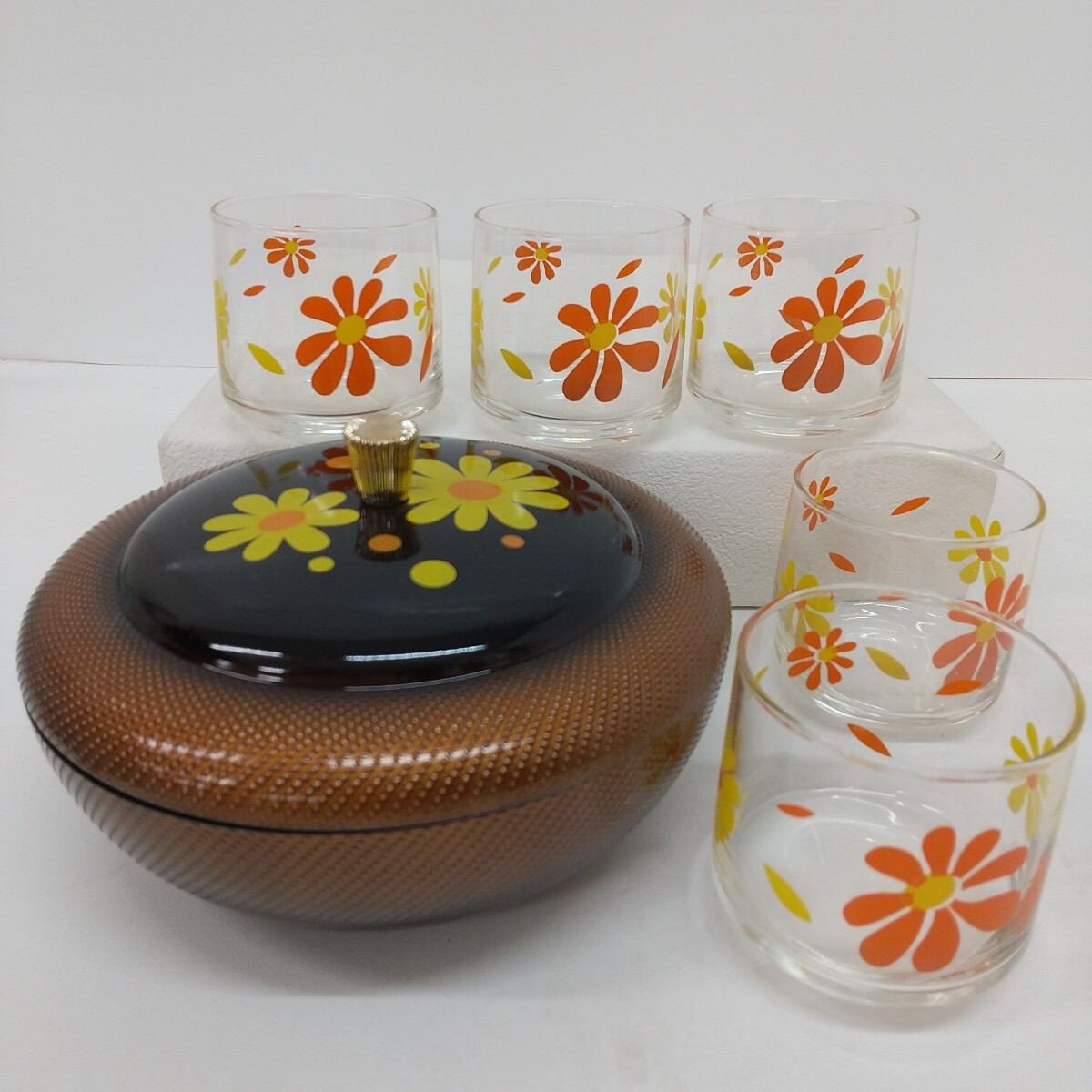 【商品名】 冷茶グラス 菓子器 【メーカー】 - 【付属品】 画像のものが全てです。 【状態】 長期保管の中古品です。 経年劣化による小傷、スレ、取れない汚れ等あります。 また、グラスの歪み(画像8)や塗装剥がれ(画像9)等ございます。 状態は画像でご確認をお願いします。 画像に写っているものが全てです。 ****************************************************** 管理番号362 |
