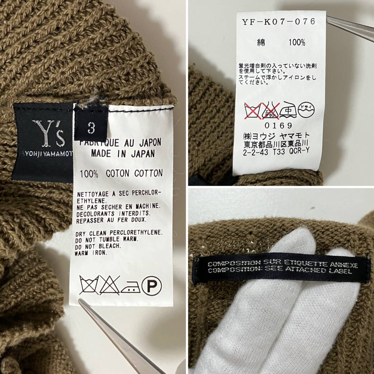 Y's Yohji Yamamoto Vネック リブ 半袖 コットン ニット カットソー 茶系 3サイズ ワイズ 薄手 セーター サマーニット archive 5060075