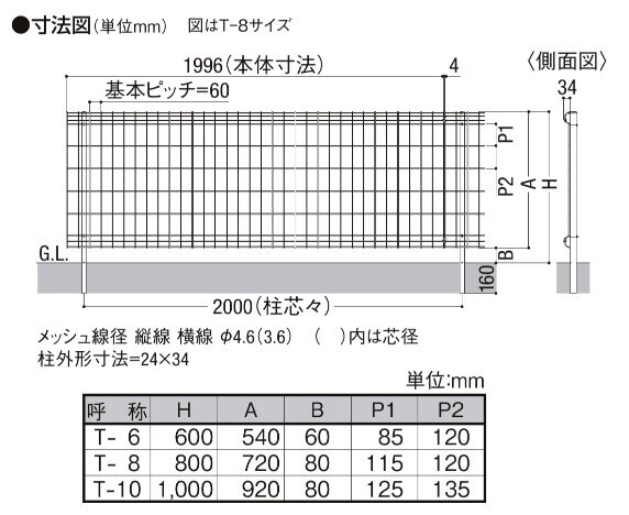 | 商品名 品番 | ハイグリッドフェンスUF8型 8FAD01SC |