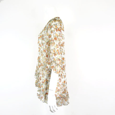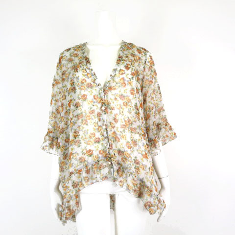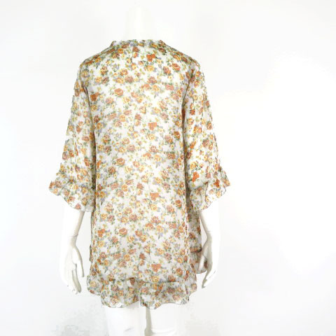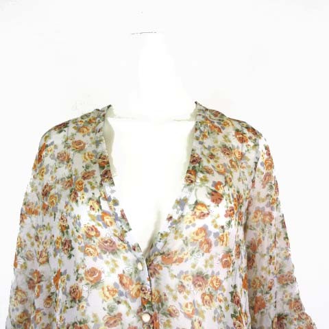 アズールバイマウジー AZUL by moussy チュニック ブラウス 花柄 フラワー シアー シースルー フリル 7分袖 S ベージュ グレー オレンジ
