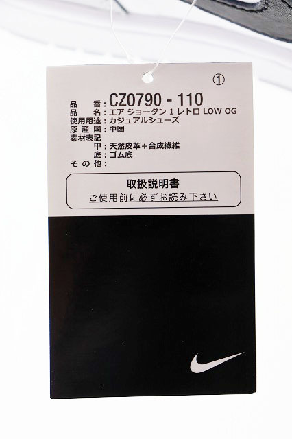 ナイキ NIKE AIR JORDAN 1 RETRO LOW OG WHITE BLACK WOLF GREY 26.5cm CZ0790-110 エア ジョーダン レトロ ロー ホワイト ブラック ウルフ グレー ▲■250613