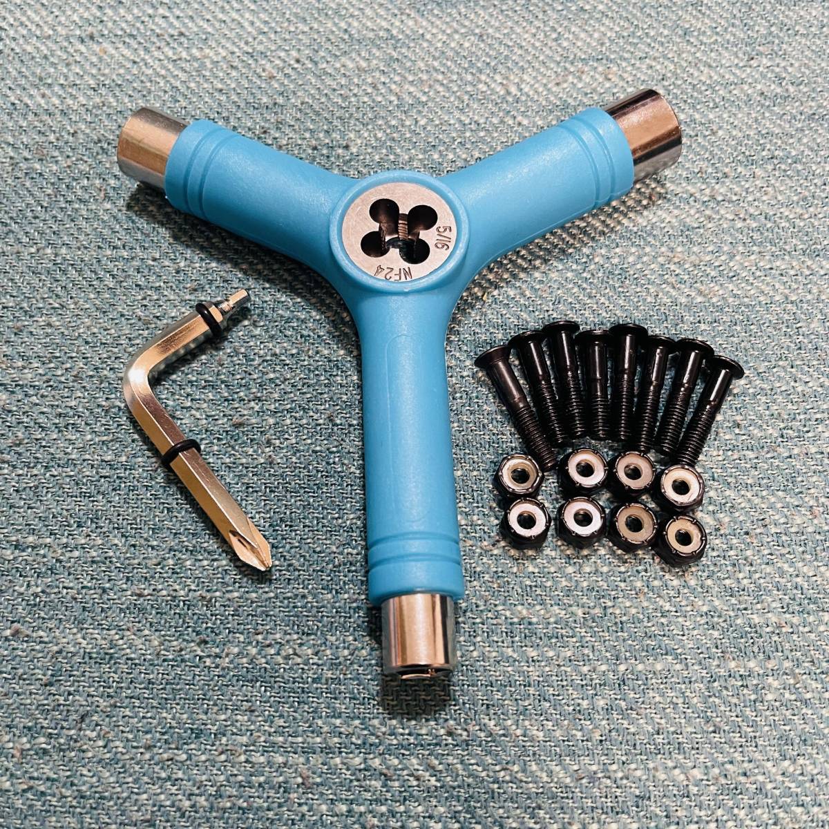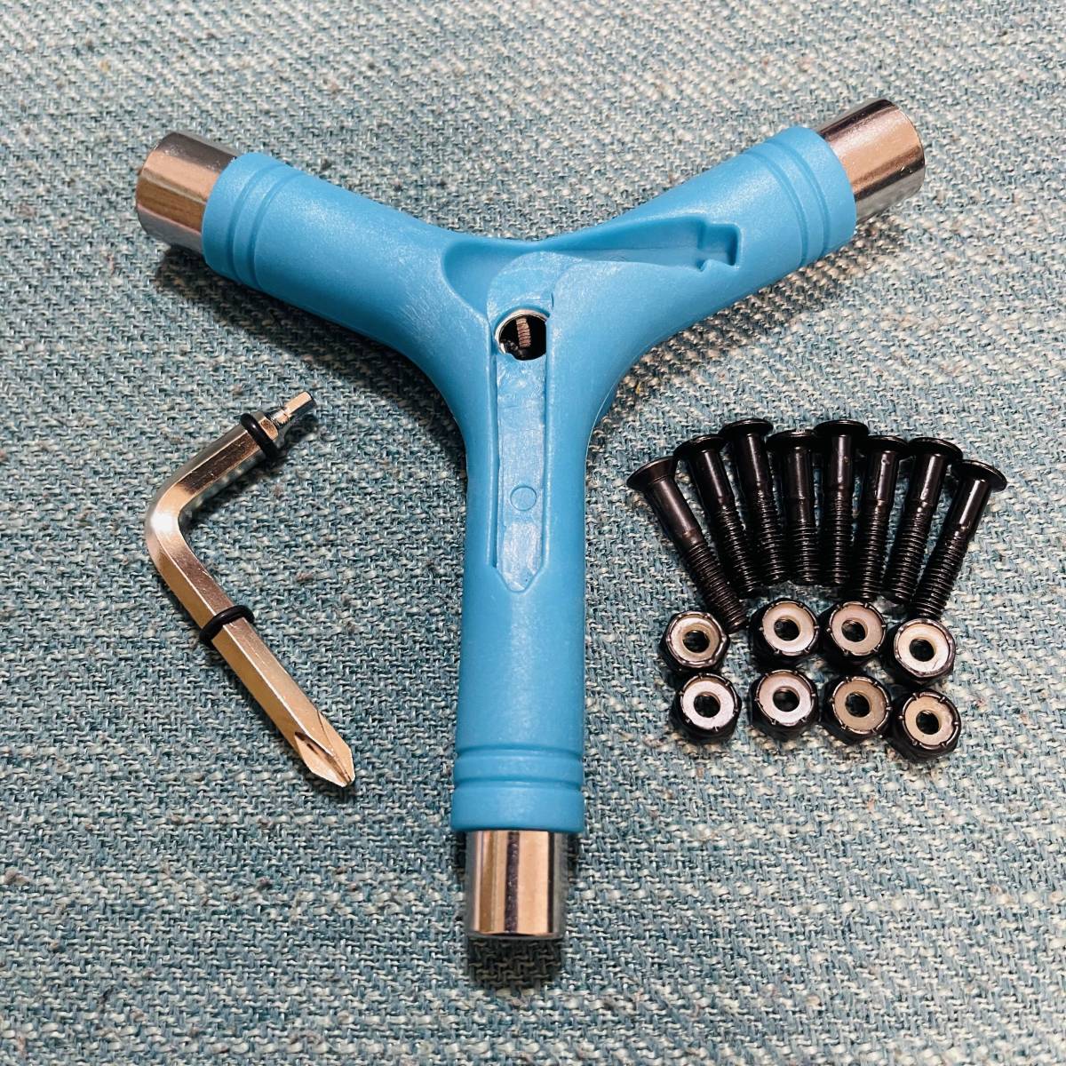 スケートボード Y字ツール+6角ヘッド 1インチ ビスセット 工具 組立 修理 トラックのアクセル修復 青色
