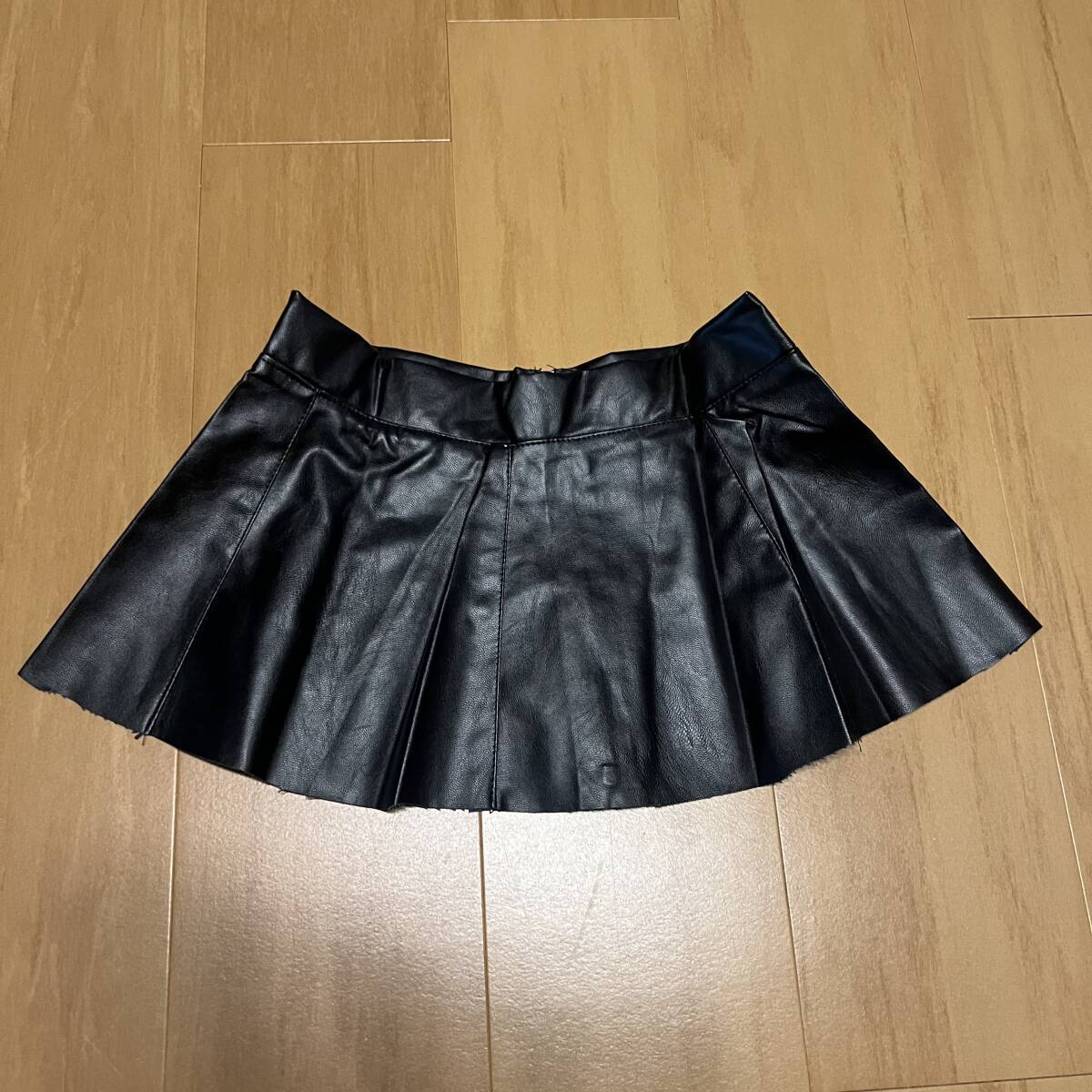 ◆ ミニスカート M シンプル アイドル ブラック 合皮 皮 レザースカート プリーツ レディース
