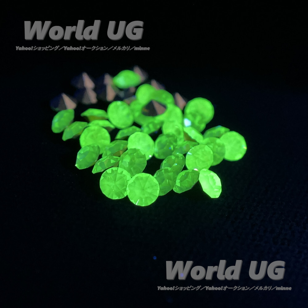 (1)UV-LEDを照射するとi-Phoneで撮影できるほど緑色に発光する(UV-蛍光灯だとウランガラスでなくても光るためUV-LEDを使用)