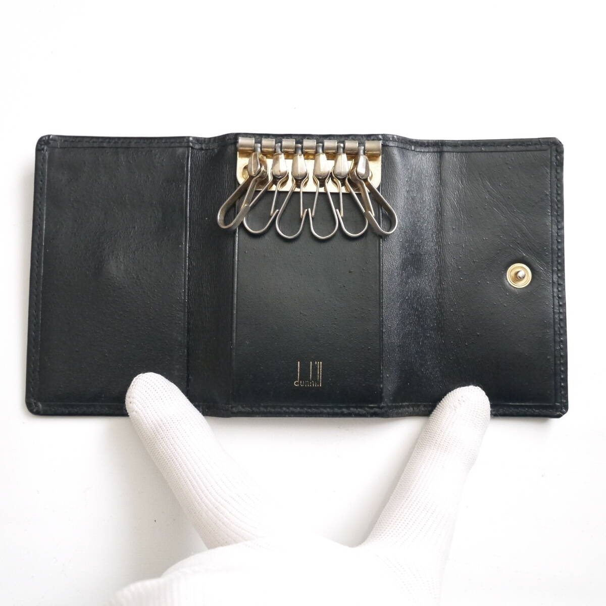 ◇  収納力も抜群!      ゴールド色の  6連 キーフック 付きです。 (  中央 下には、  dunhill ロゴ入り です。)