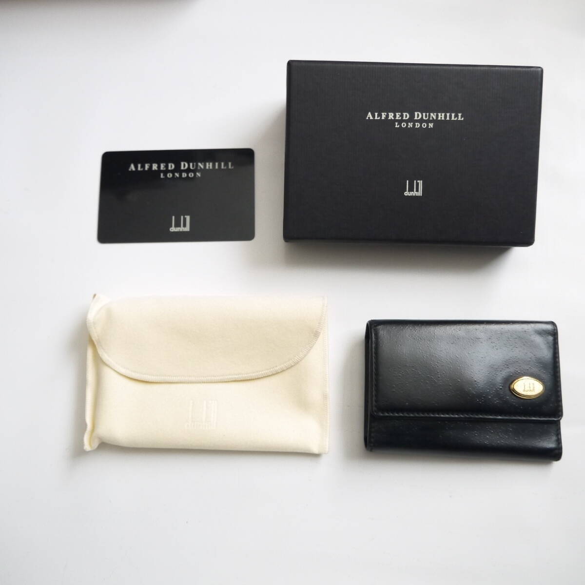 $ 美品 $ 定番♪◆ dunhill ◆ ダンヒル ◆ ロゴプレート・ 本革 レザー製 ◆ 6連キーケース ◆ 黒 ブラック◆ 箱 保存袋 付き◆ 送料無料