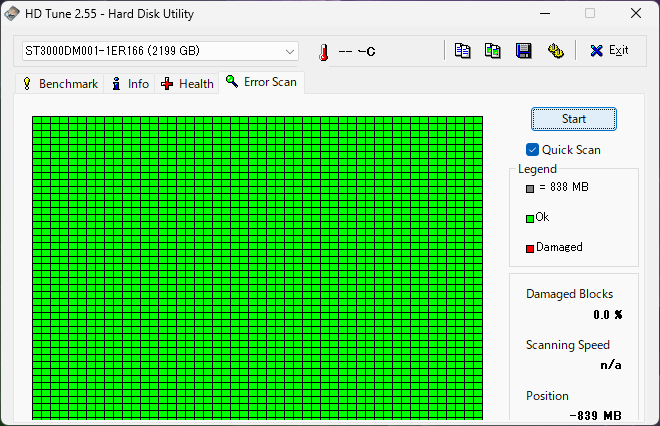 ・HDD不良セクタ:無し(HD TUNE Quick Scan)