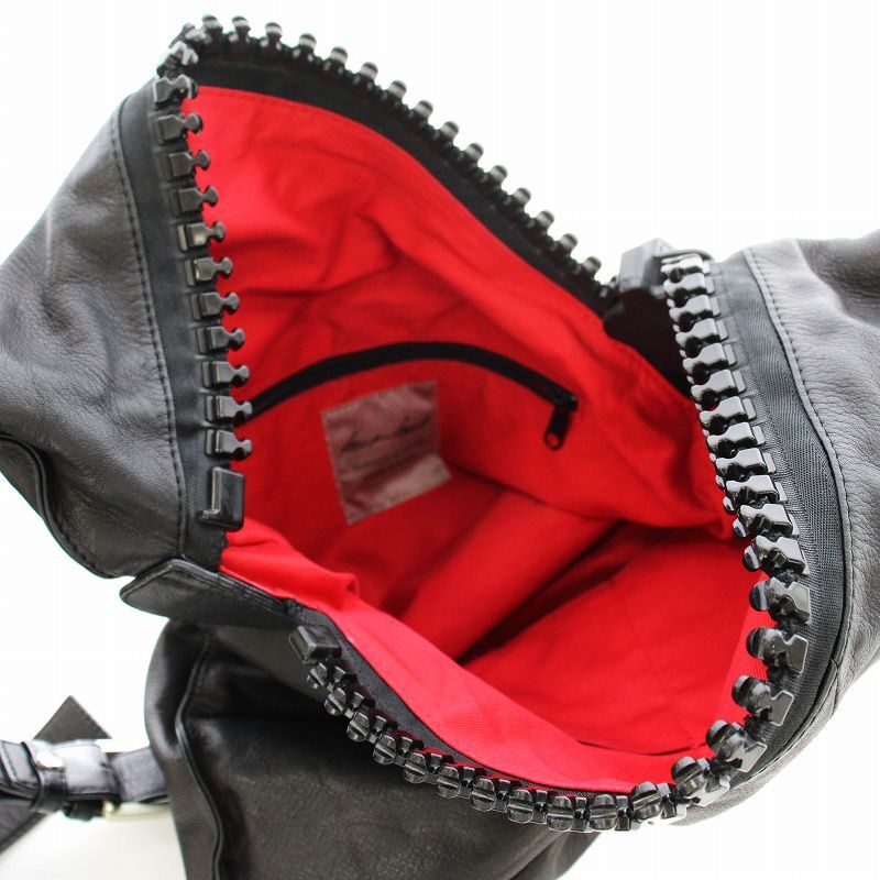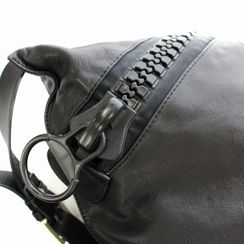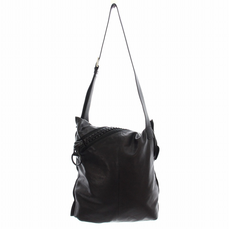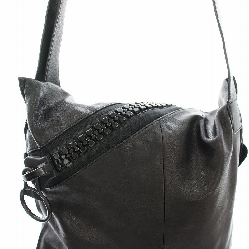 カワカワ kawa-kawa レザー ショルダーバッグ ビッグファスナー 黒 ブラック /☆G レディース