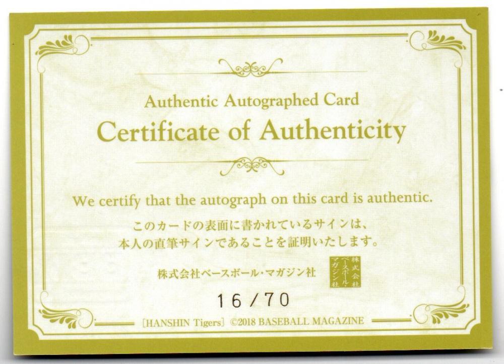 【能見篤史】2018 BBM 阪神タイガース 直筆サインカード[16/70]