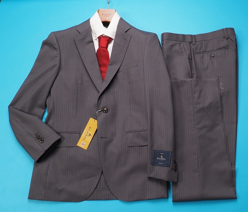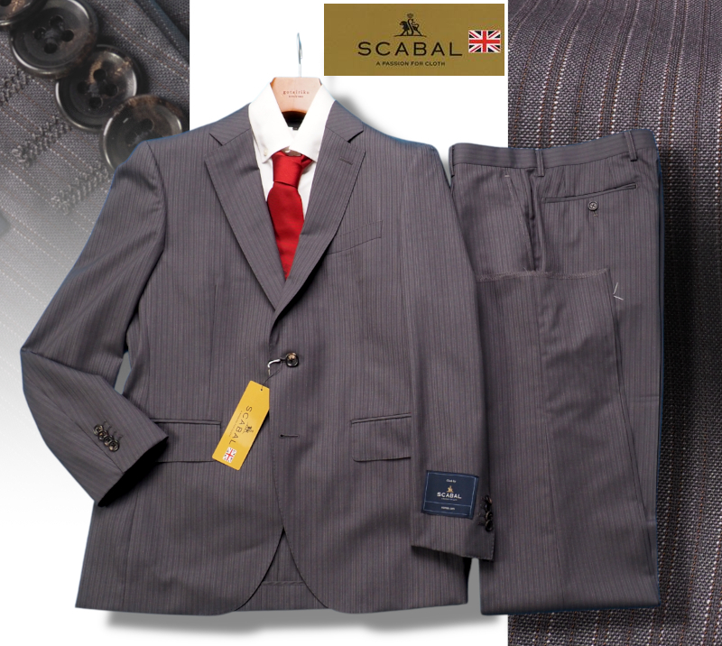 新品20.6万円 大手百貨店扱い 春夏 日本製『Scabal スキャバル 英国製生地』Super120Sウール ストライプ スーツAB5灰(H)1704471