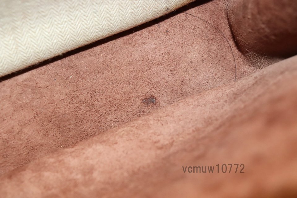 中古ですので新品と比較してすれ、小傷、色むら、若干の型崩れ、使用に問題ないレベルの糸ほつれ、金具にくすみ等ございますが写真の通りコンディション良好です。