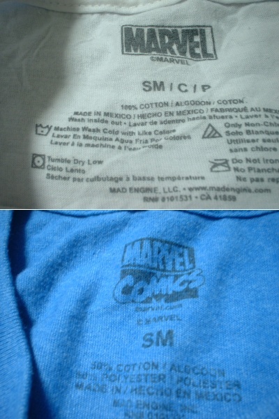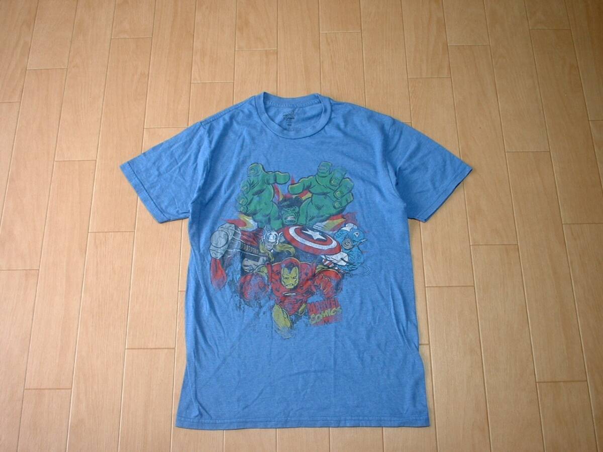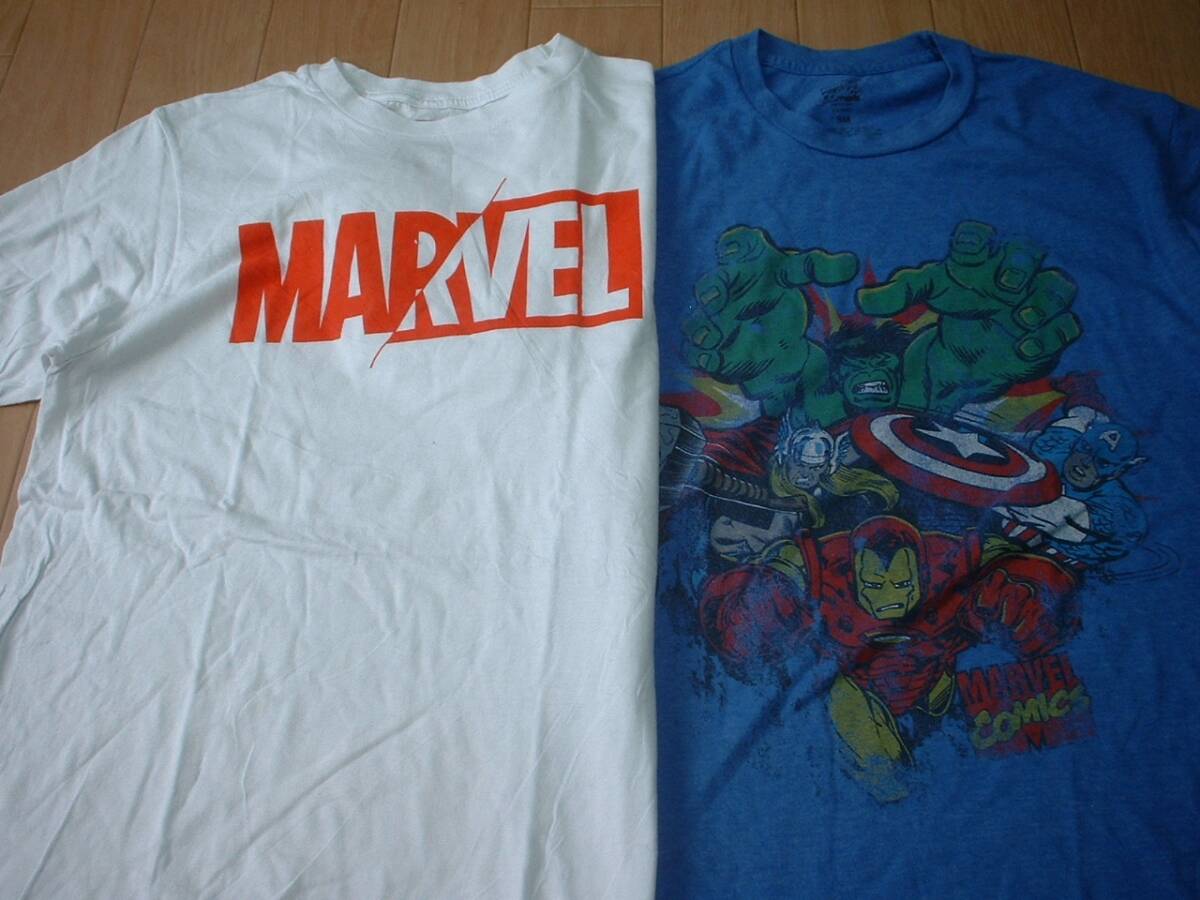 即戦力2着セットMARVELビッグロゴクルーネックTシャツSM正規マーヴェルCOMICS白ホワイト青ブルーキャプテンアメリカハルクソーアイアンマン