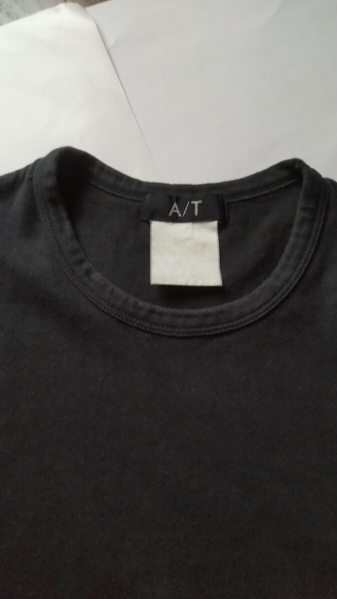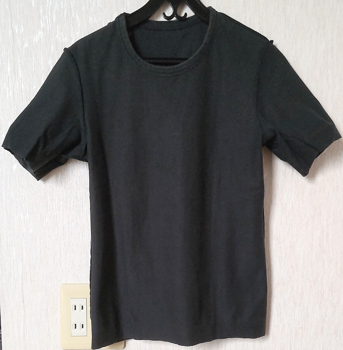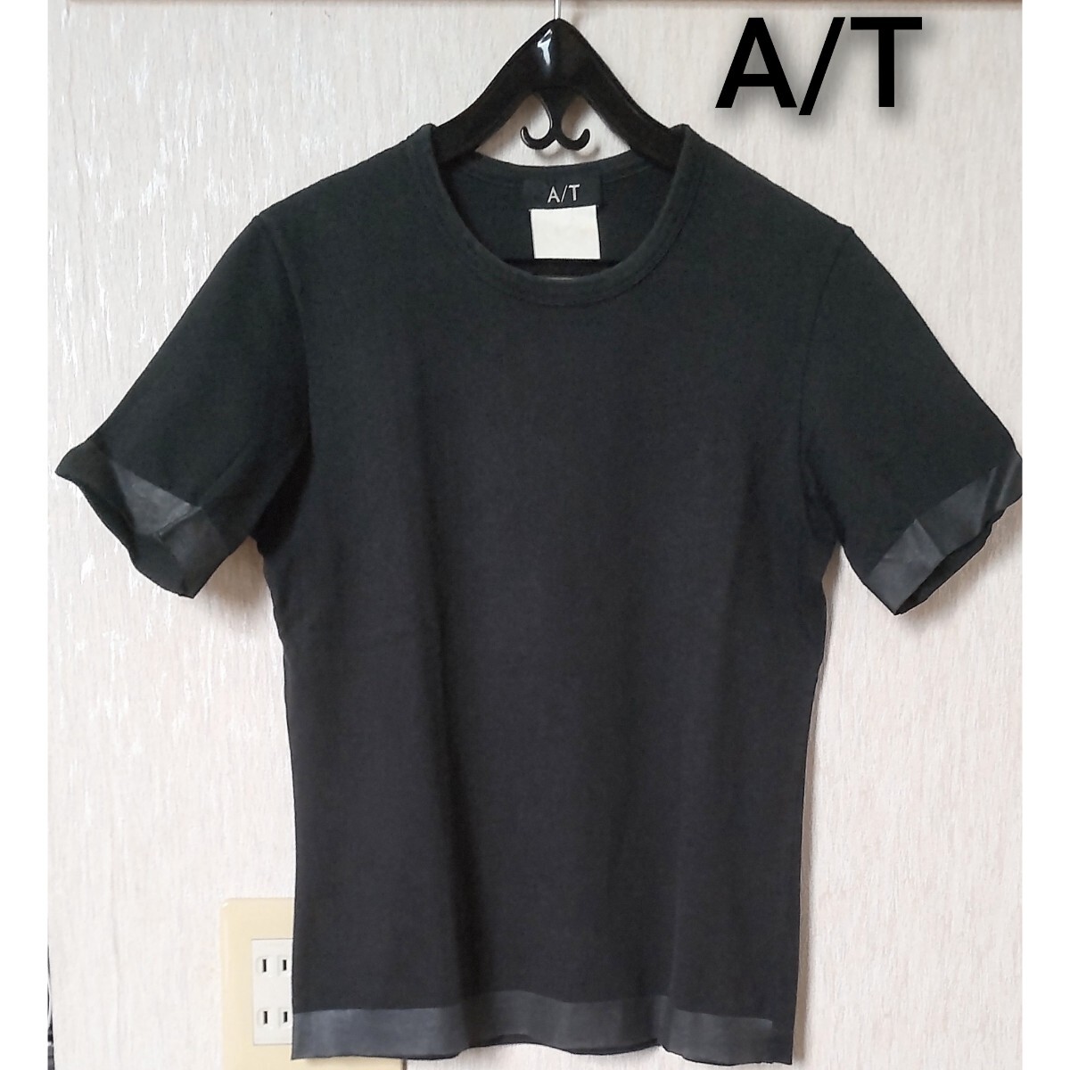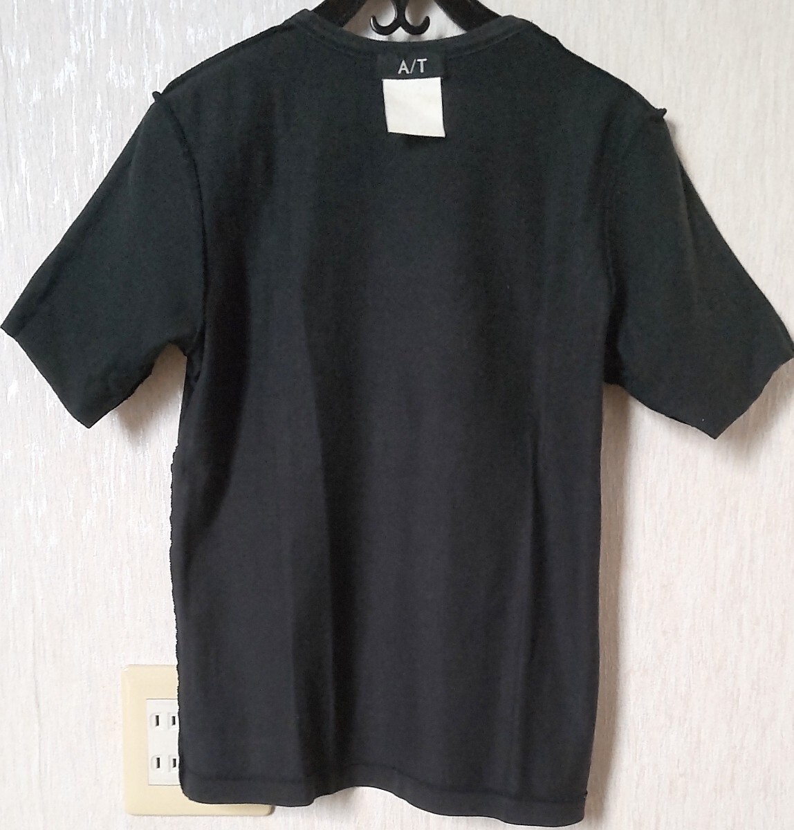 A/T の袖口と裾の加工が特徴の黒Tシャツ