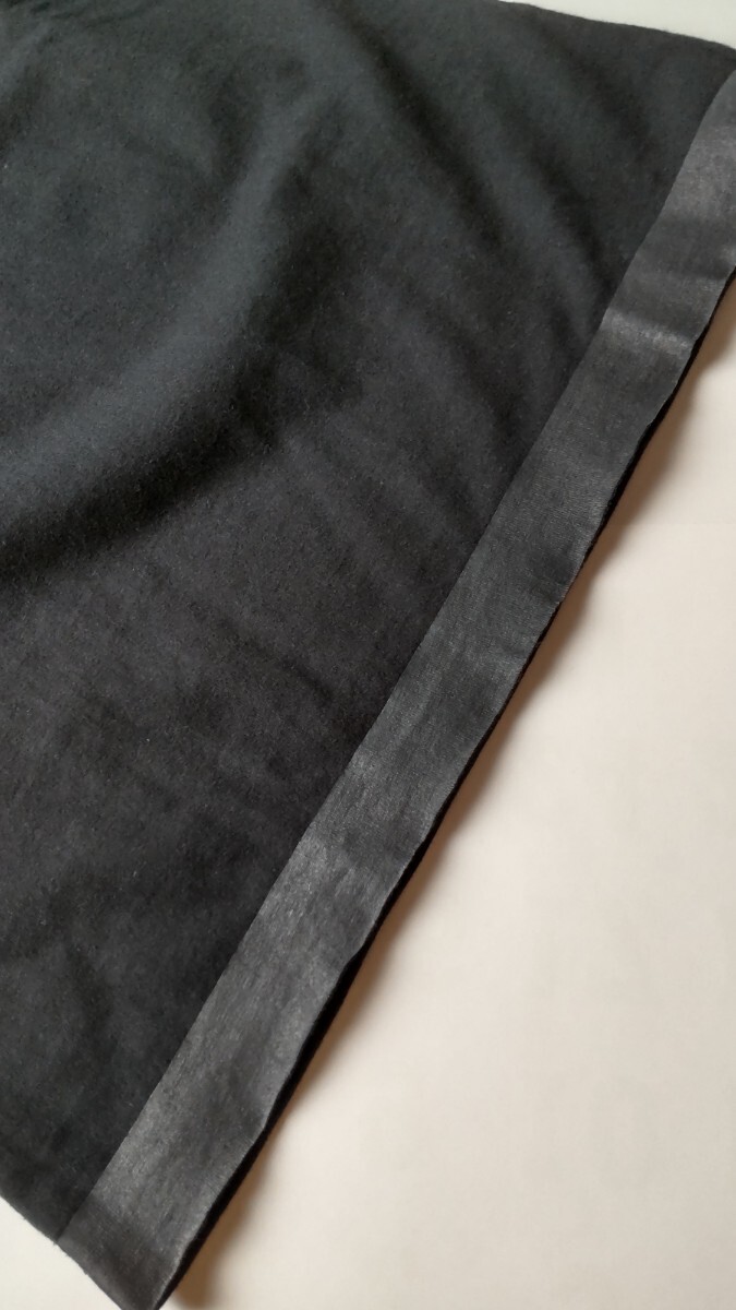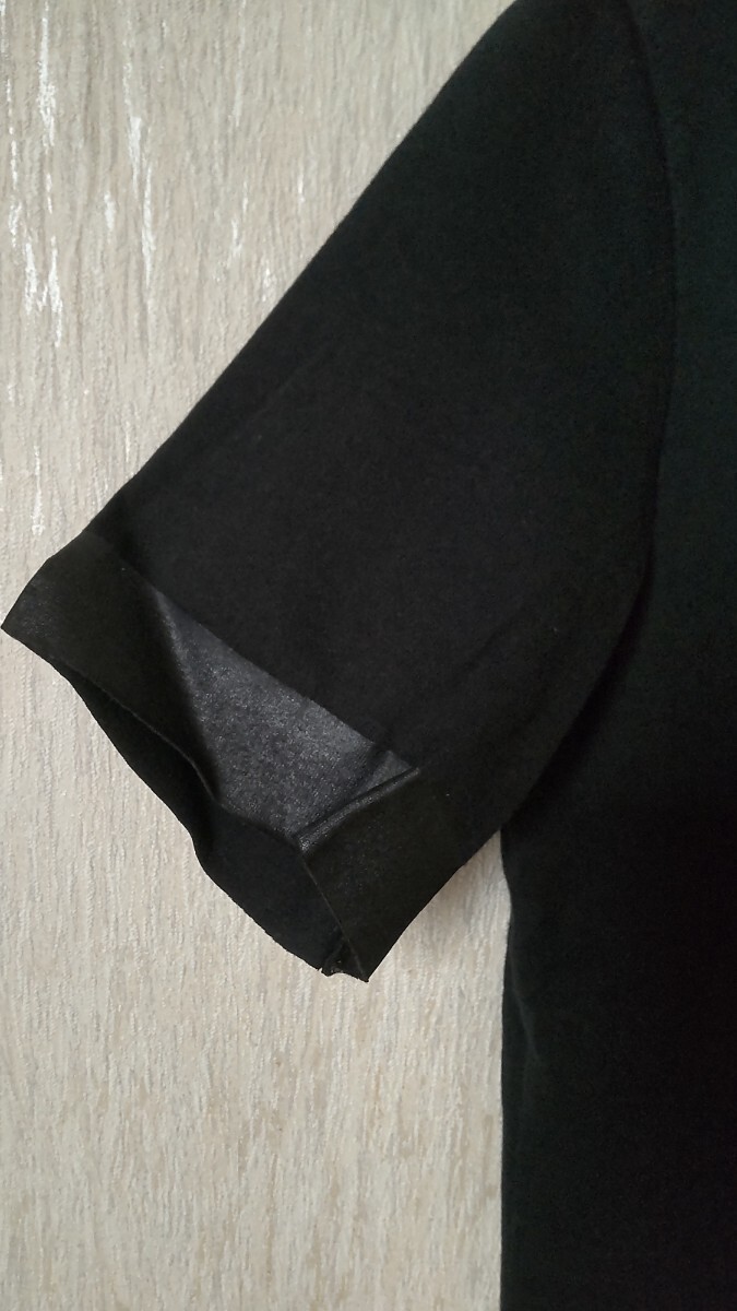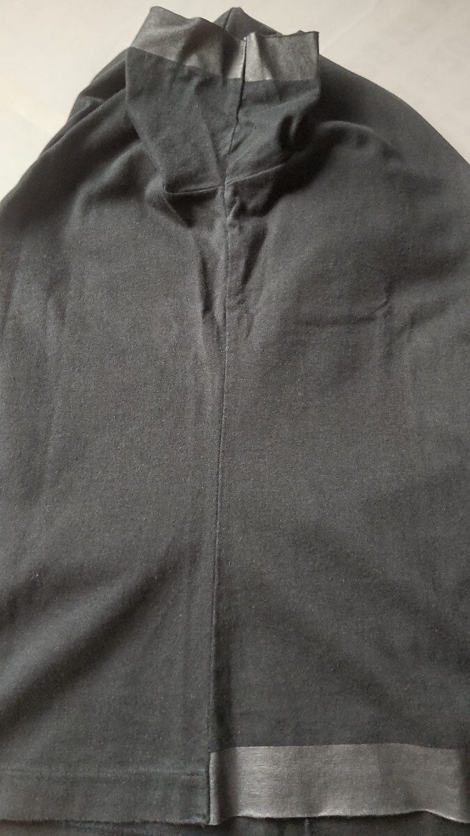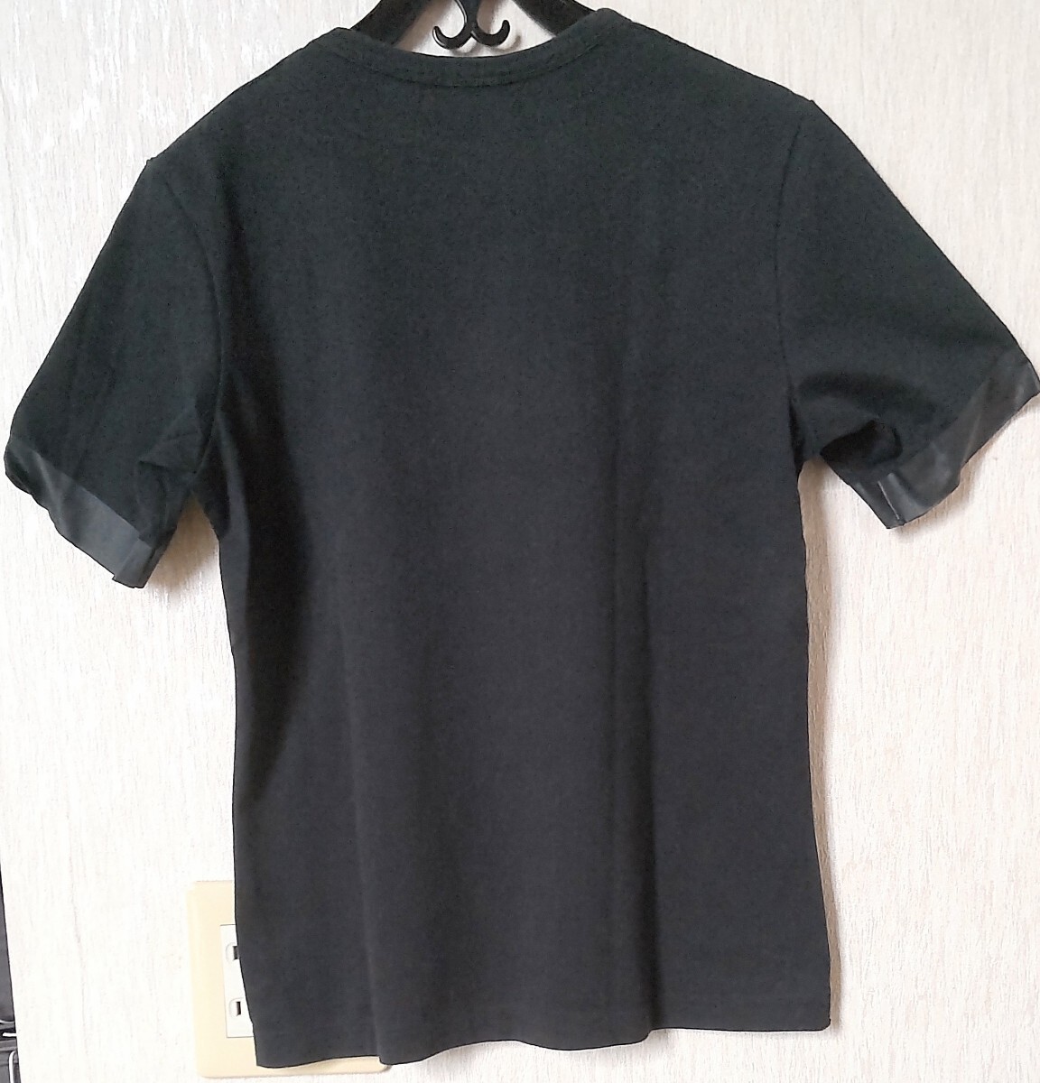 A/T の袖口と裾の加工が特徴の黒Tシャツ