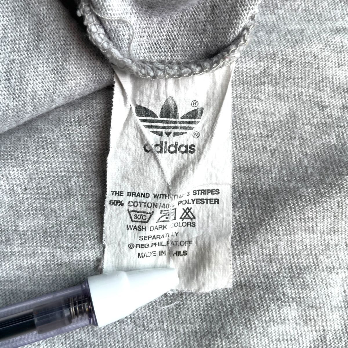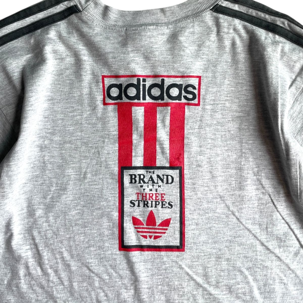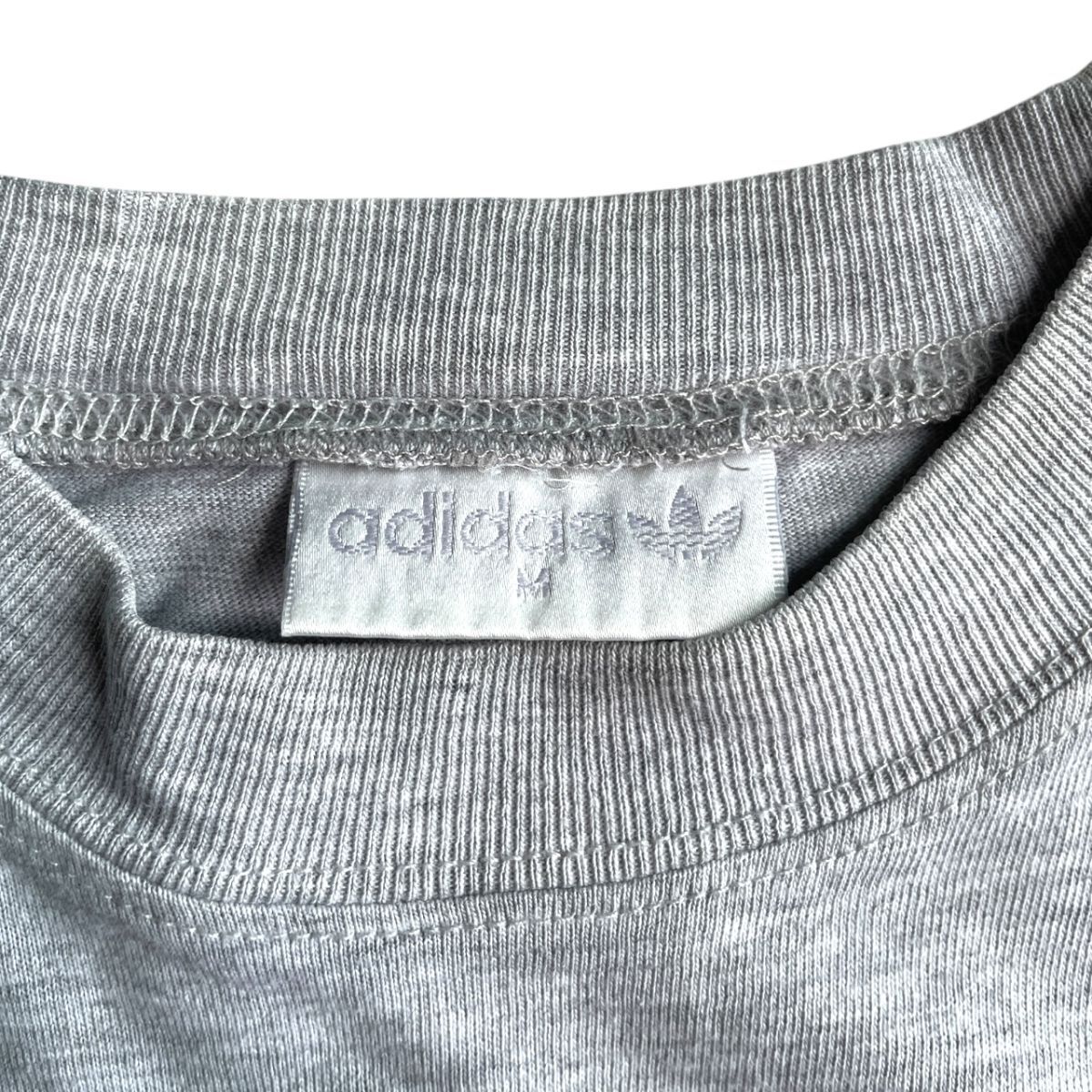 希少★90's adidas アディダス 半袖 ロゴ プリント Tシャツ Mサイズ グレー 大きめ ヴィンテージ VINTAGE 3本線 スリーストライプ