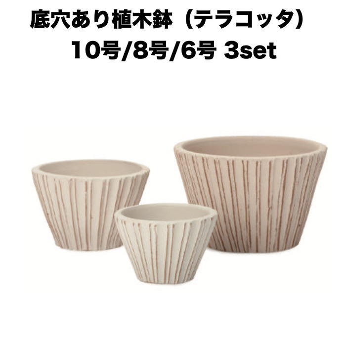 テラコッタ鉢の若干の色ムラ、米カケ、底穴周りの焼ヒビ等は通常品となります。