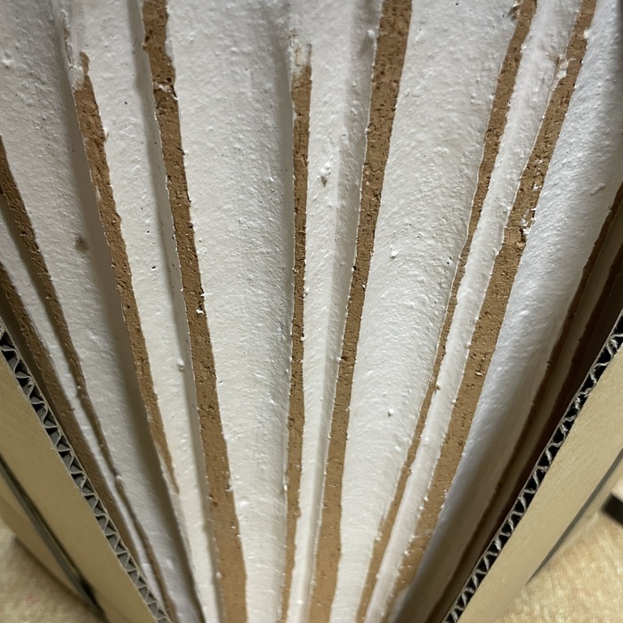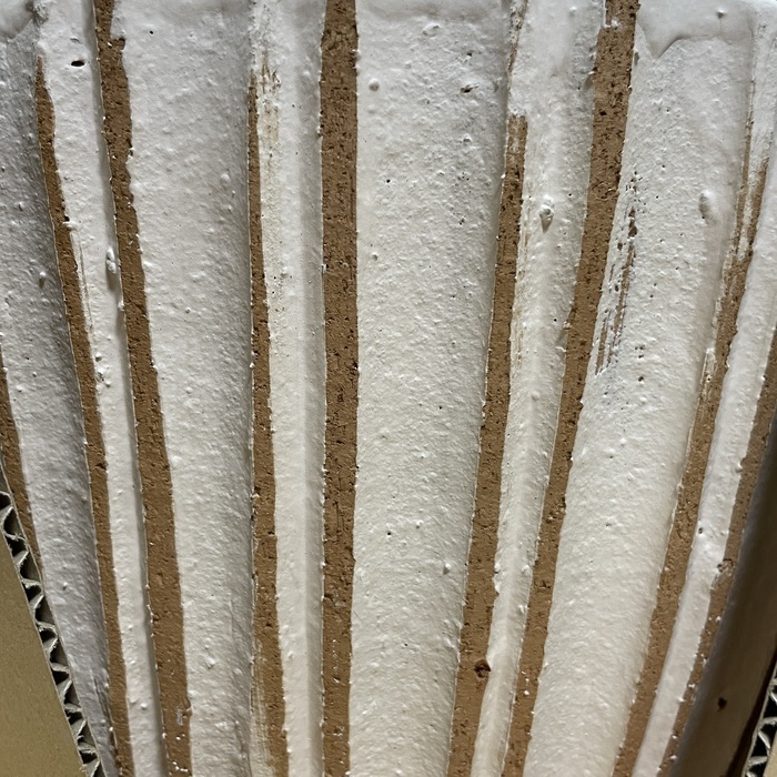 白い土を塗ってから焼き付ける白土焼付は、屋外で剥げやすいペイントとは違い、白が剥げにくい仕上がりです。