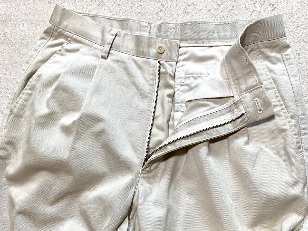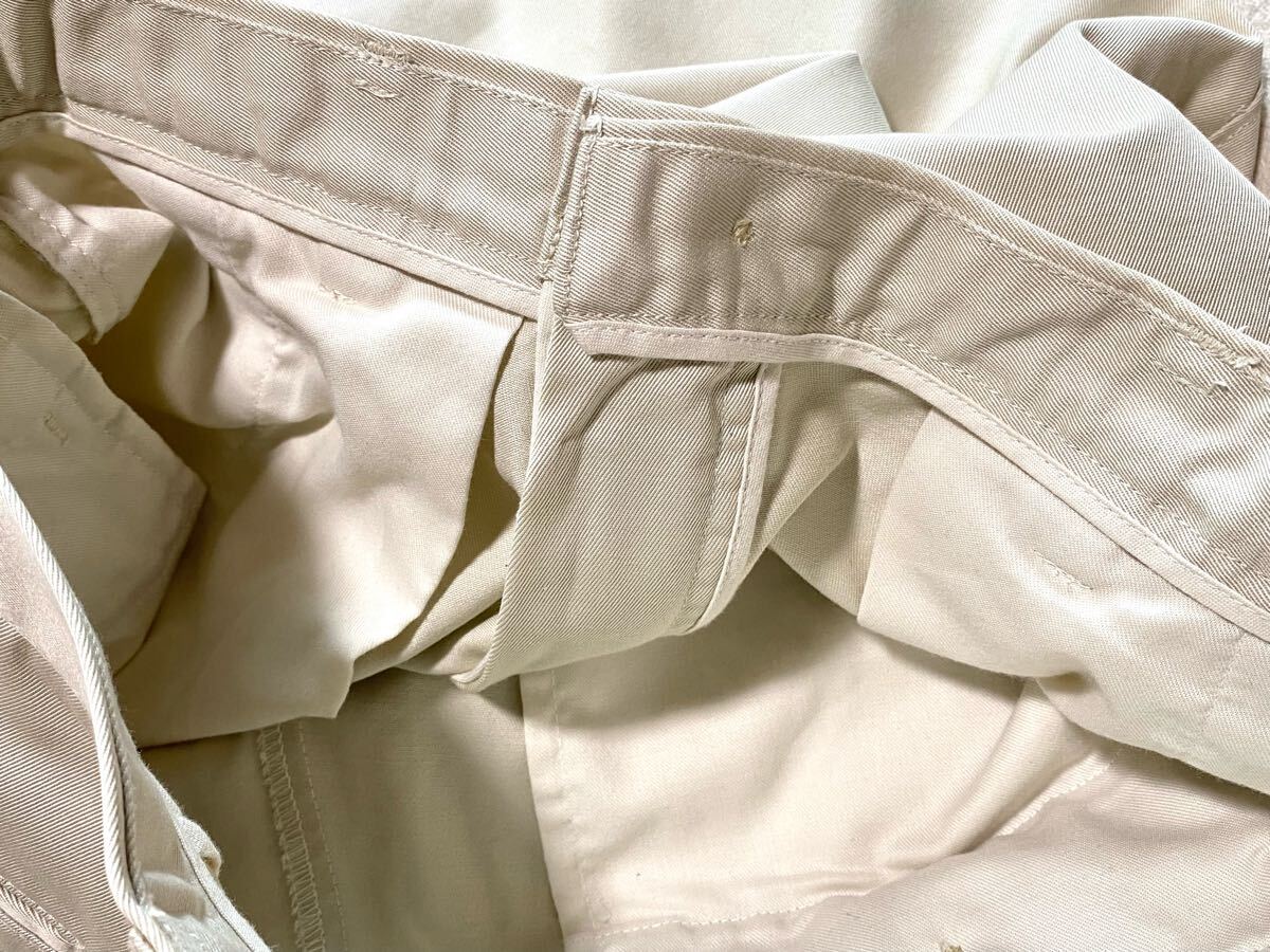2007年のユニクロ ツータックチノパンです。内側はパイピング処理されスラックスに近い仕様です。現在のユニクロのチノパンと比べると少し厚めでしっかりとした生地感です。