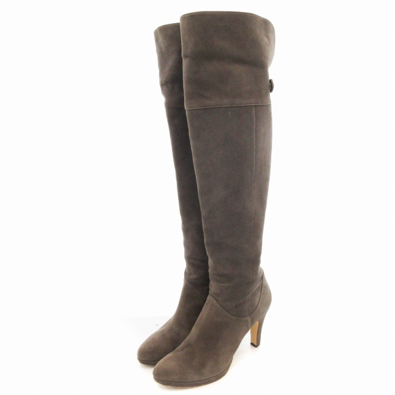 メダ MEDA ロングブーツ アーモンドトゥ ハイヒール スエード ジップアップ 24.5cm グレー系 /UD ■MA レディース
