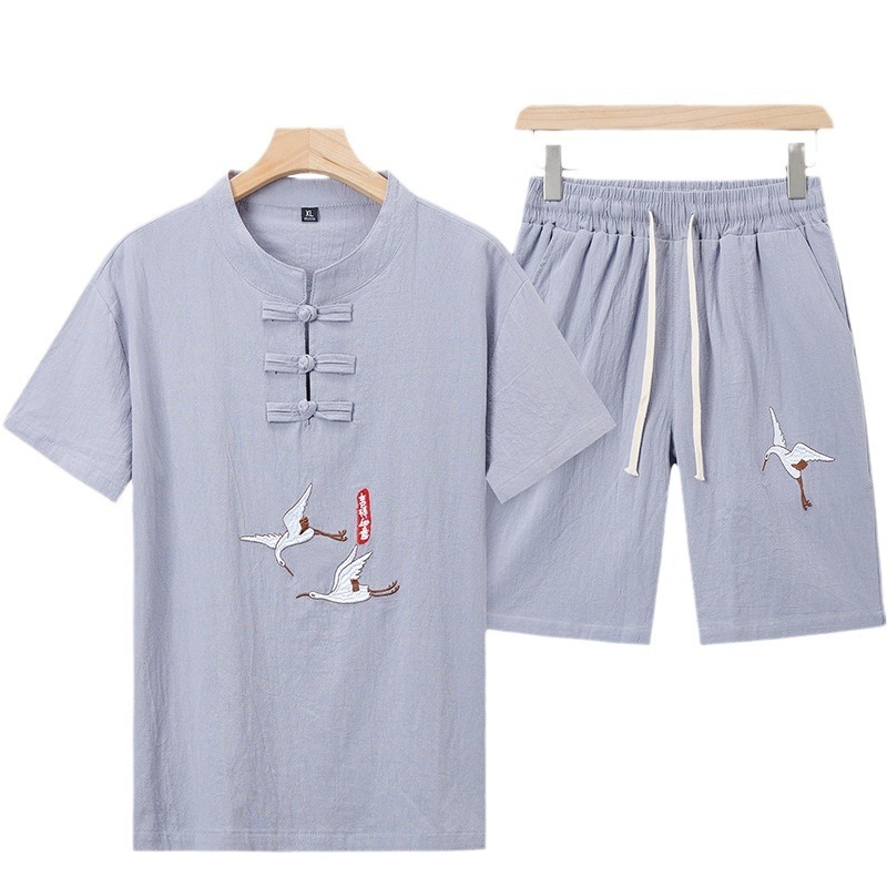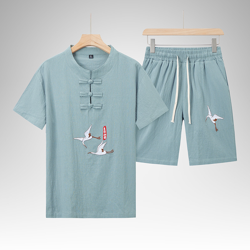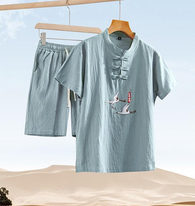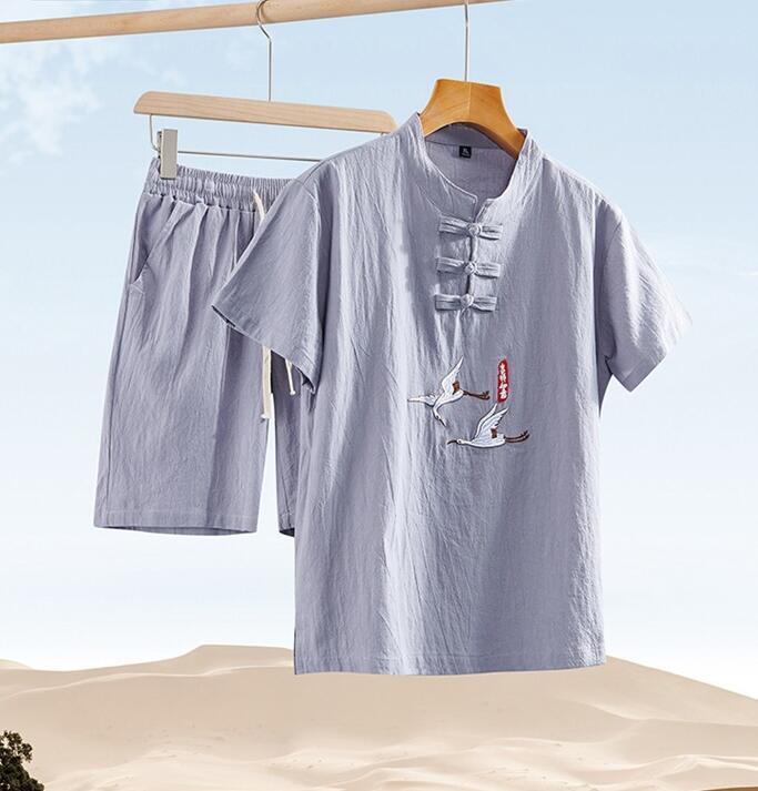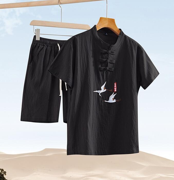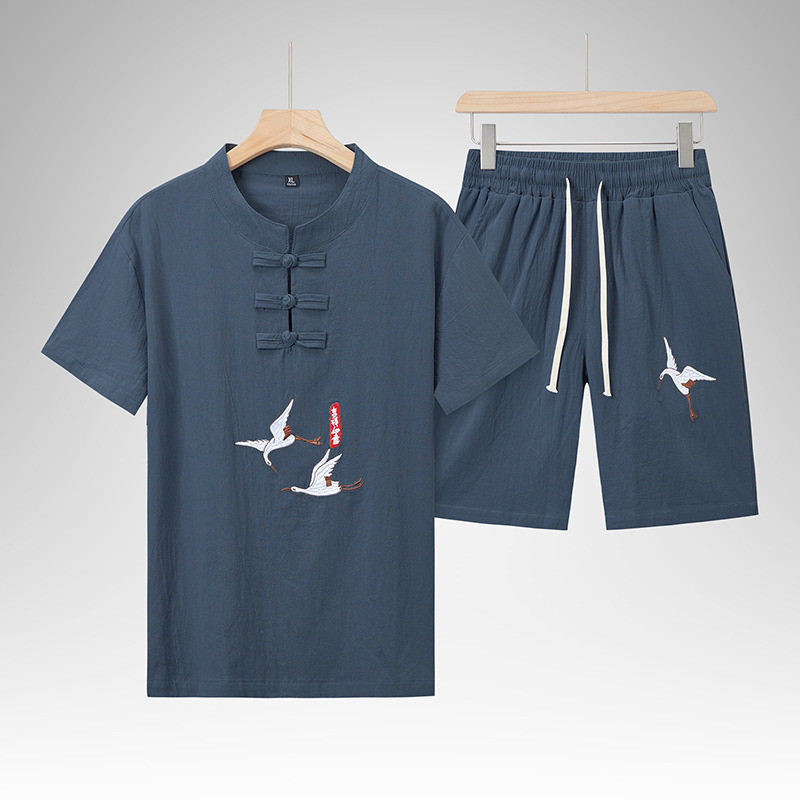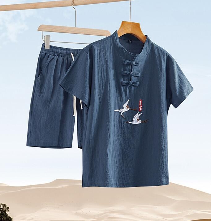 新入荷新品メンズ ジャージ セットアップ 綿麻上下セット ハーフパンツ ショートパンツ 部屋着カジュアル ゆったり 大きいサイズ 紺色 M~5X
