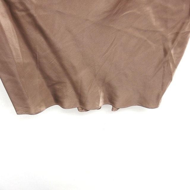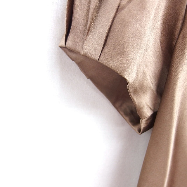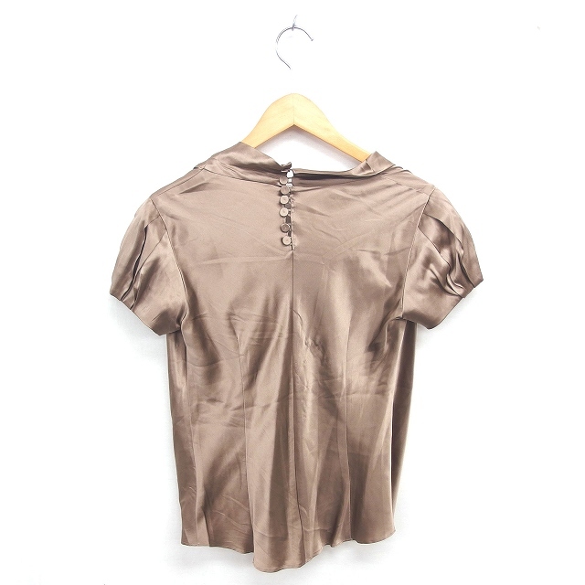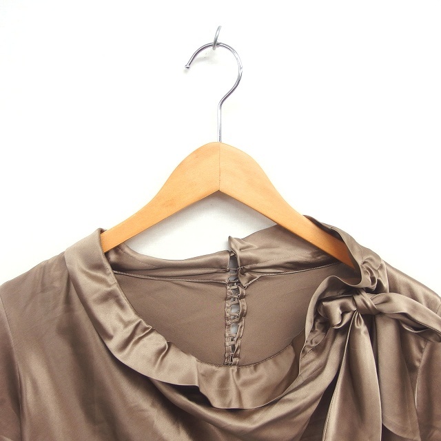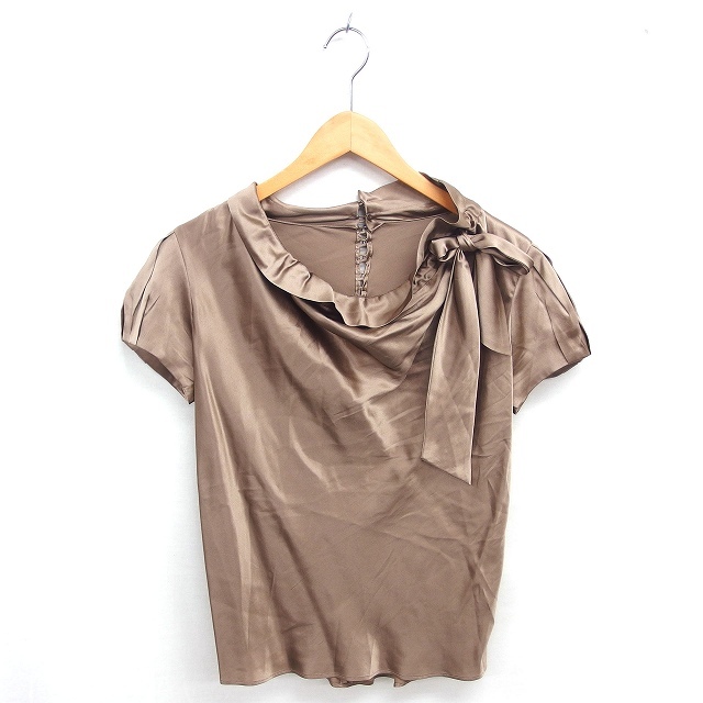 デザインワークス DESIGNWORKS カットソー ブラウス フリルカラー リボン 光沢 シルク 半袖 40 茶 ブラウン /TT18 レディース