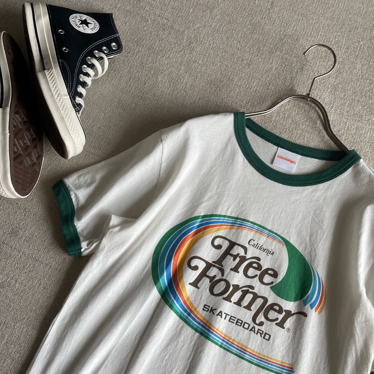 『Free Former』と『360』をのデザインロゴが目を惹くリンガーTシャツ