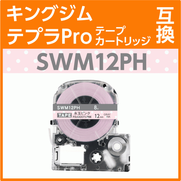 キングジム テプラPro用 互換 テープカートリッジ SWM12PH 模様ラベル 水玉 ピンク/グレー文字 12mm