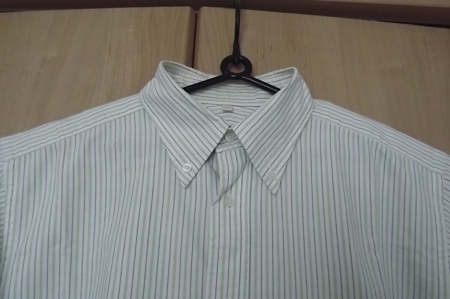 TOP VALU ボタンダウンシャツ半袖(白地に緑紺ストライプ)LLサイズ