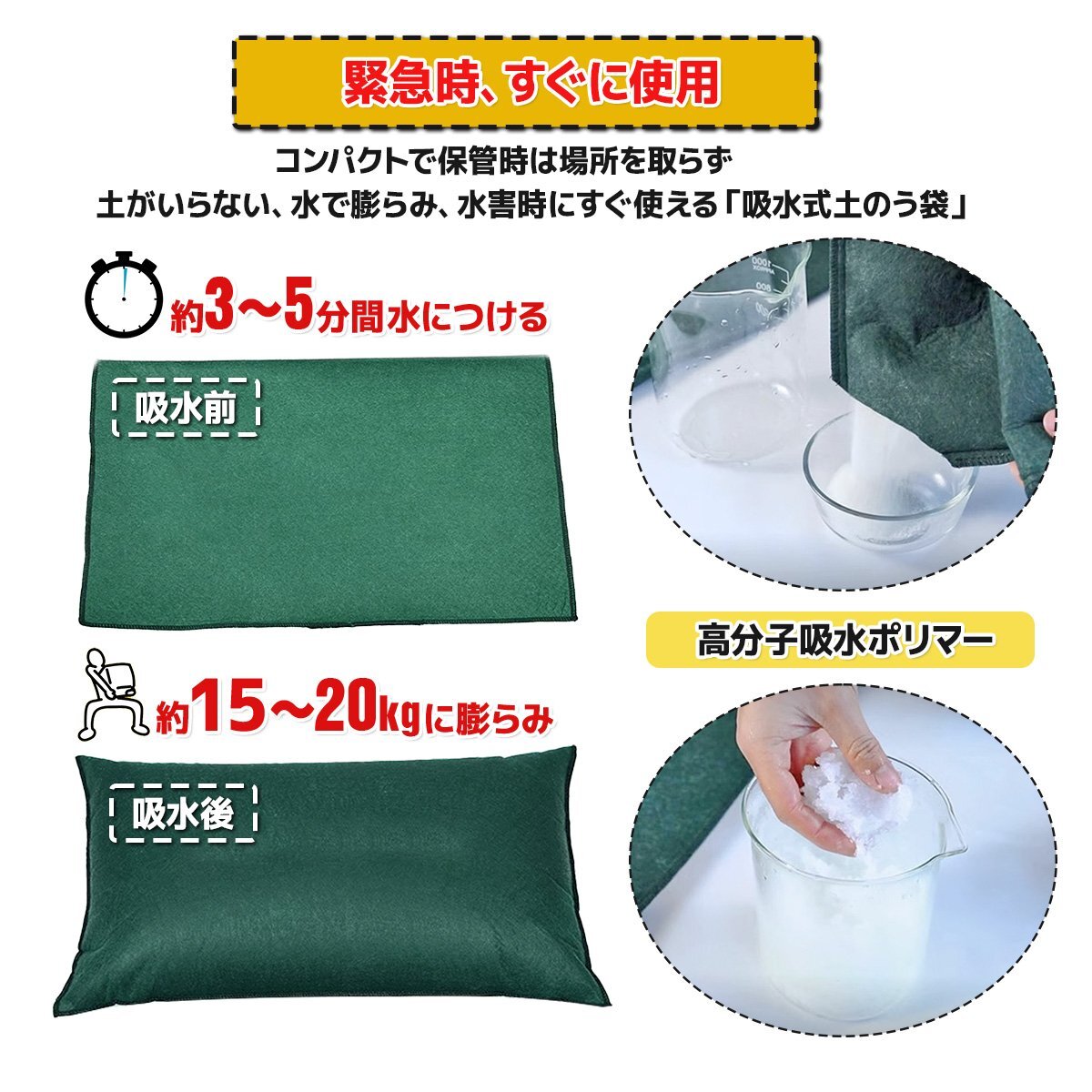 吸水性土のう 水だけでふくらむ土を使わない 台風、大雨、浸水の備えに 緊急災害補助用品 吸水性簡易土のう