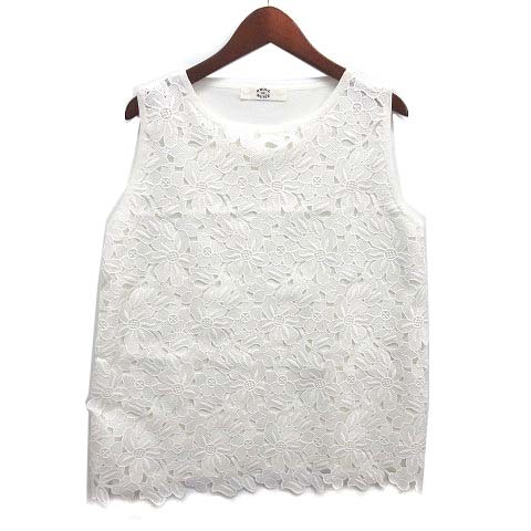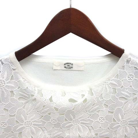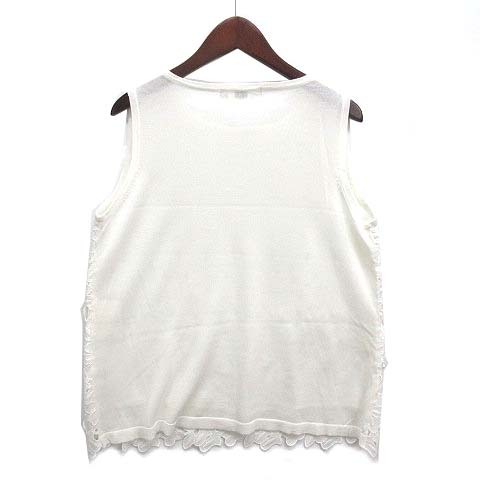 未使用品 オーブ デ ミュゼ O'HOVE DE MUSEE 切替 レース サマーニット ノースリーブ プルオーバー フラワー オフホワイト 白 40