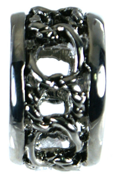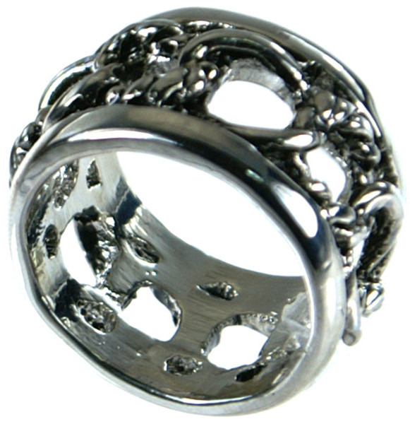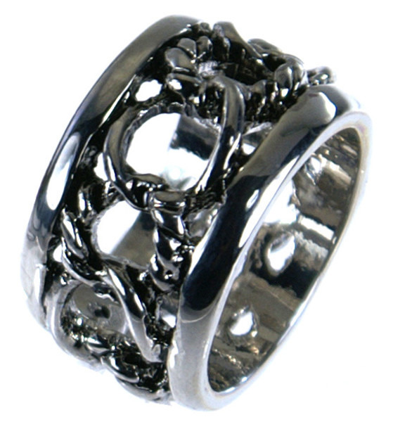 存在感抜群のリング。幅広デザインが指元にアクセントを加え、