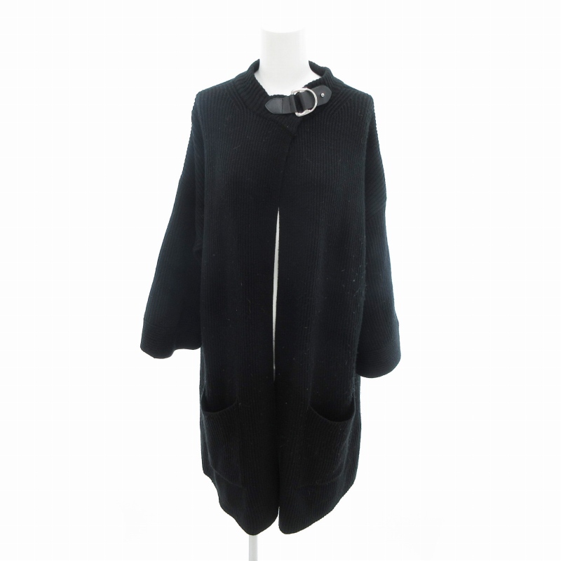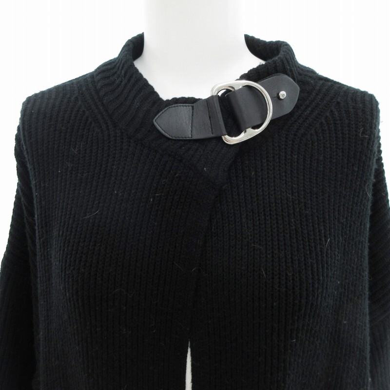 ポロ ラルフローレン POLO RALPH LAUREN ニット ケープコート ウール レザー ロング丈 M 黒 ブラック /HO レディース
