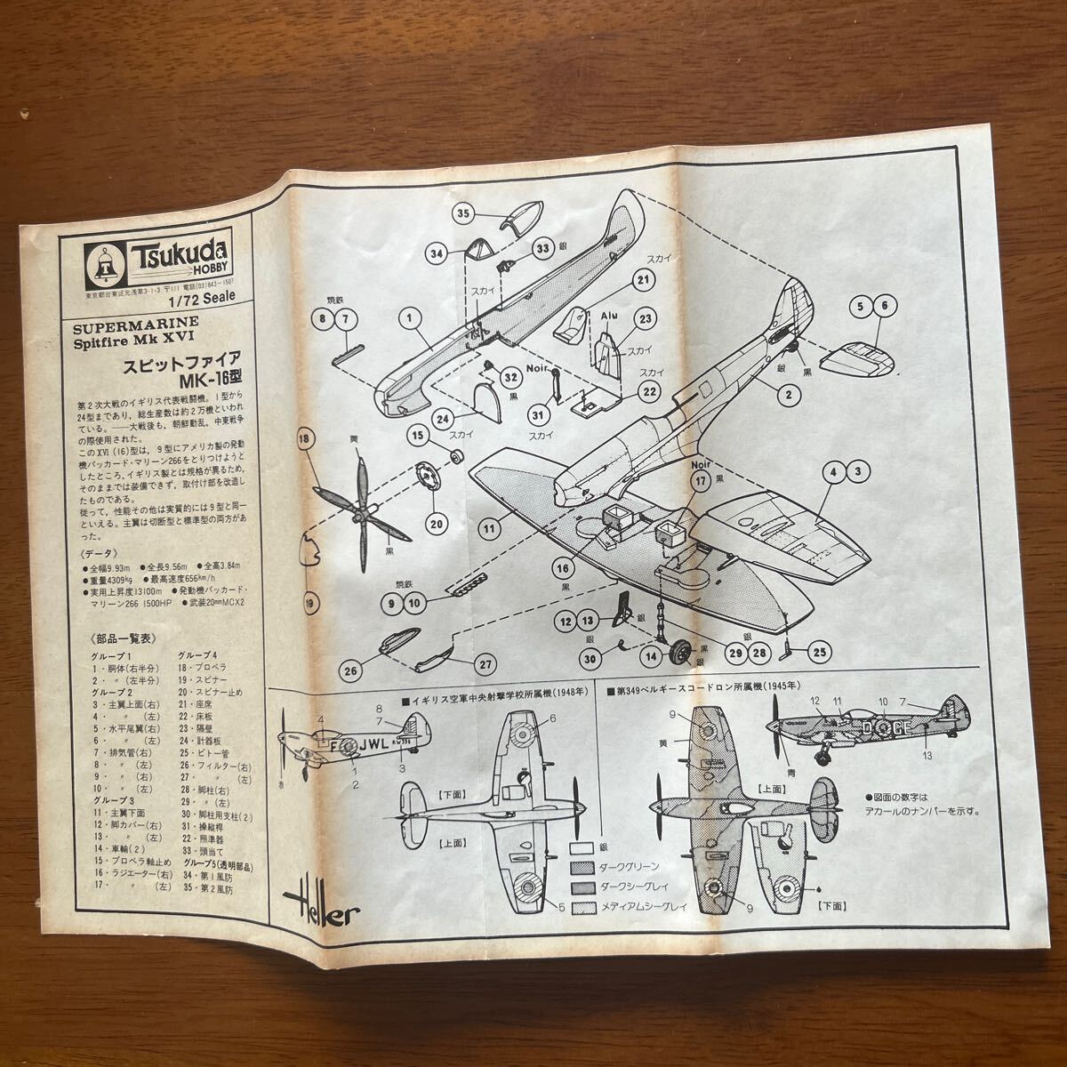 エレール Heller 1/72 スピットファイア SpitfireMk.16(袋未開封、ツクダの取説が添付されていました)