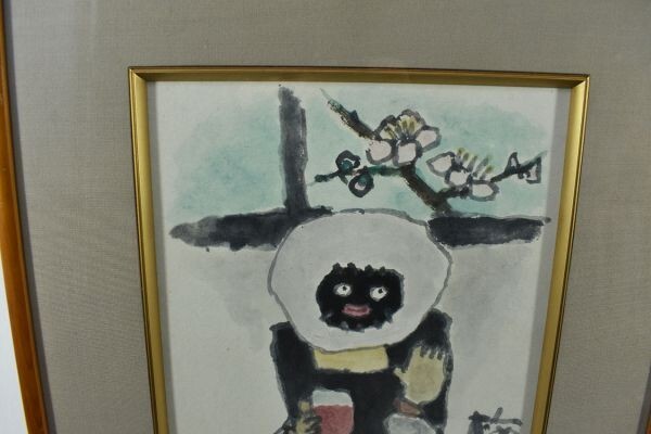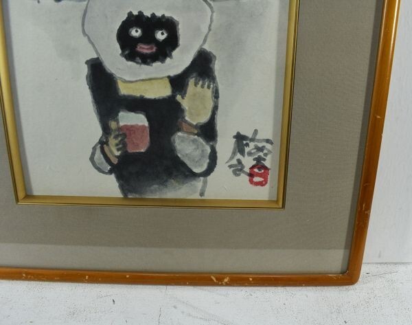 畦地梅太郎画額「作品」 水彩 色紙 サイン、印 26.3×23.3 Umetaro Azechi