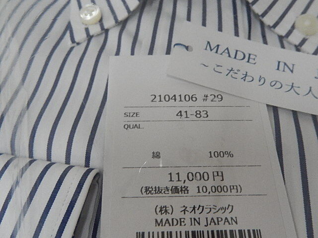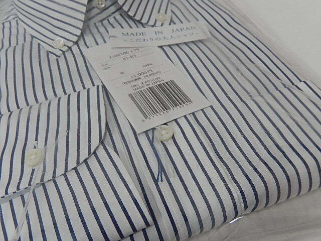ま) 新品 未使用品 長袖 ワイシャツ ビジネスシャツ 41-83  ポケット ボタンダウンメンズ 日本製 綿100%