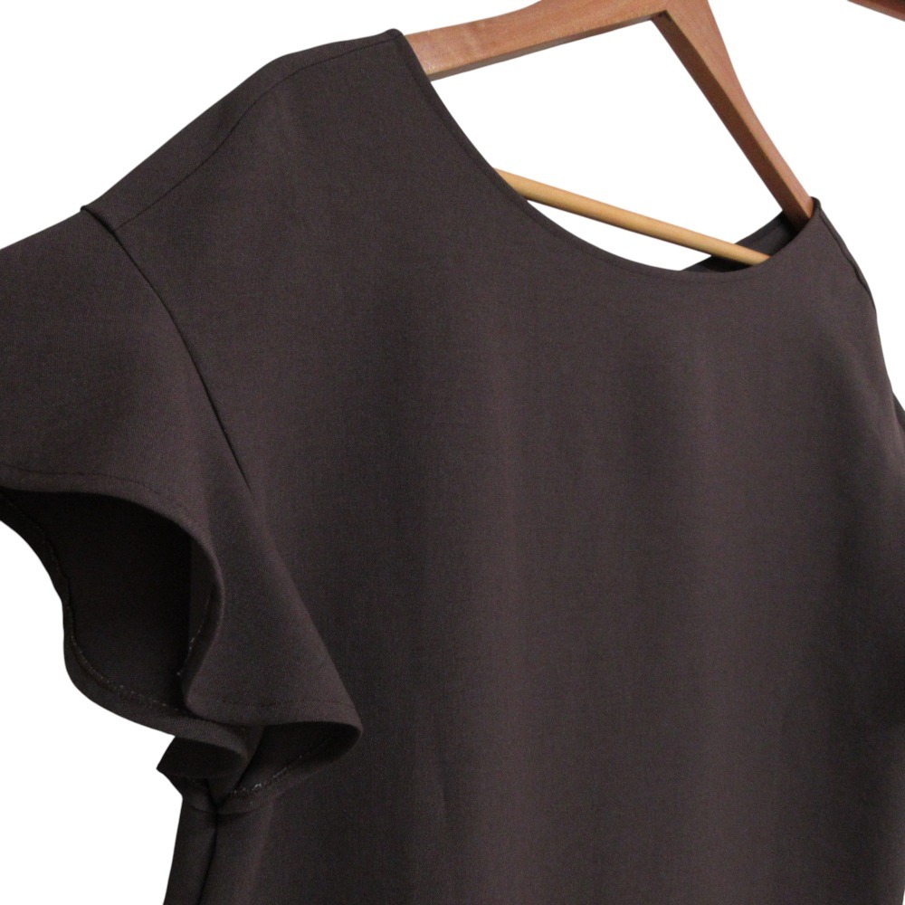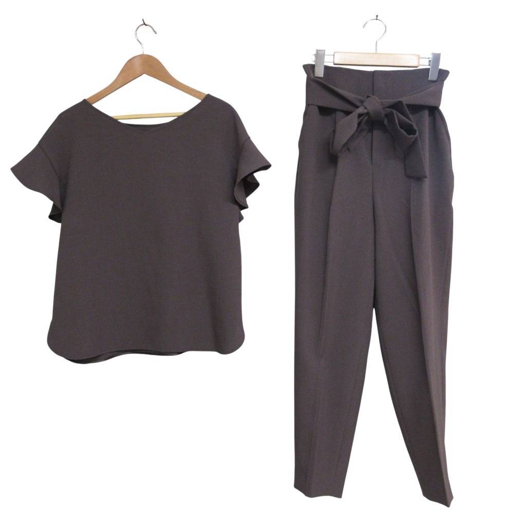 商品名:23SS TIARA ティアラ 麻調 袖フリル ブラウス ハイウエスト リボン テーパードパンツ セットアップ 4 ブラウン