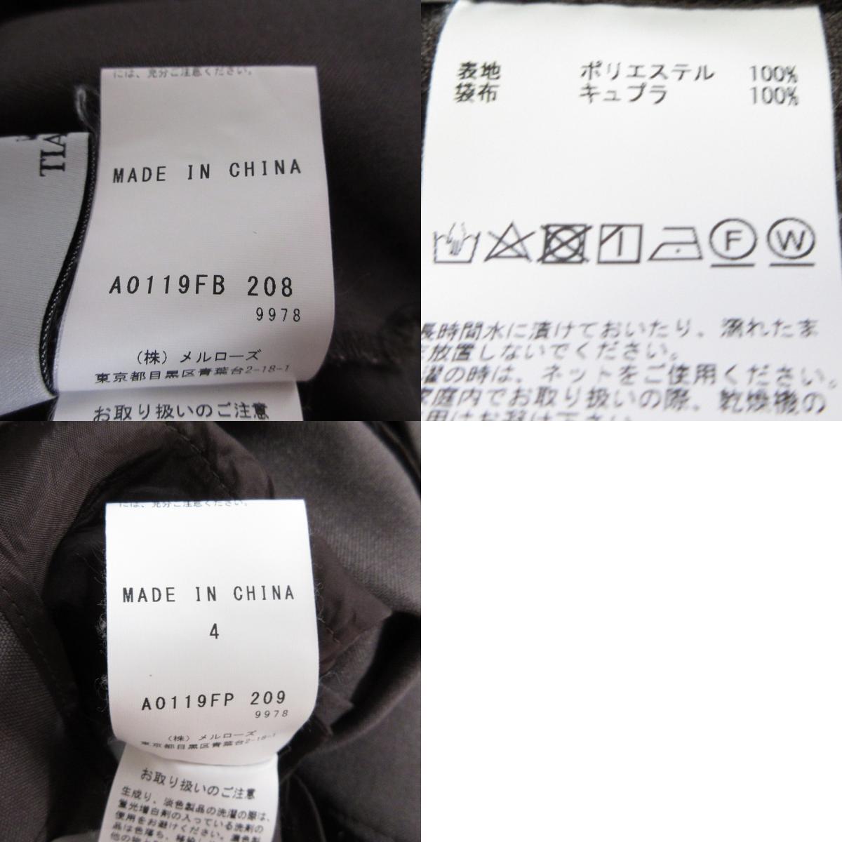 美品 23SS TIARA ティアラ 麻調 袖フリル ブラウス ハイウエスト リボン テーパードパンツ セットアップ 4 ブラウン