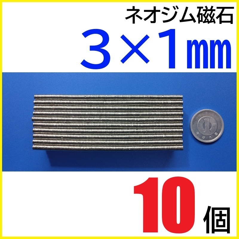ネオジム磁石 直径3㎜×厚さ1㎜ 10個 です。