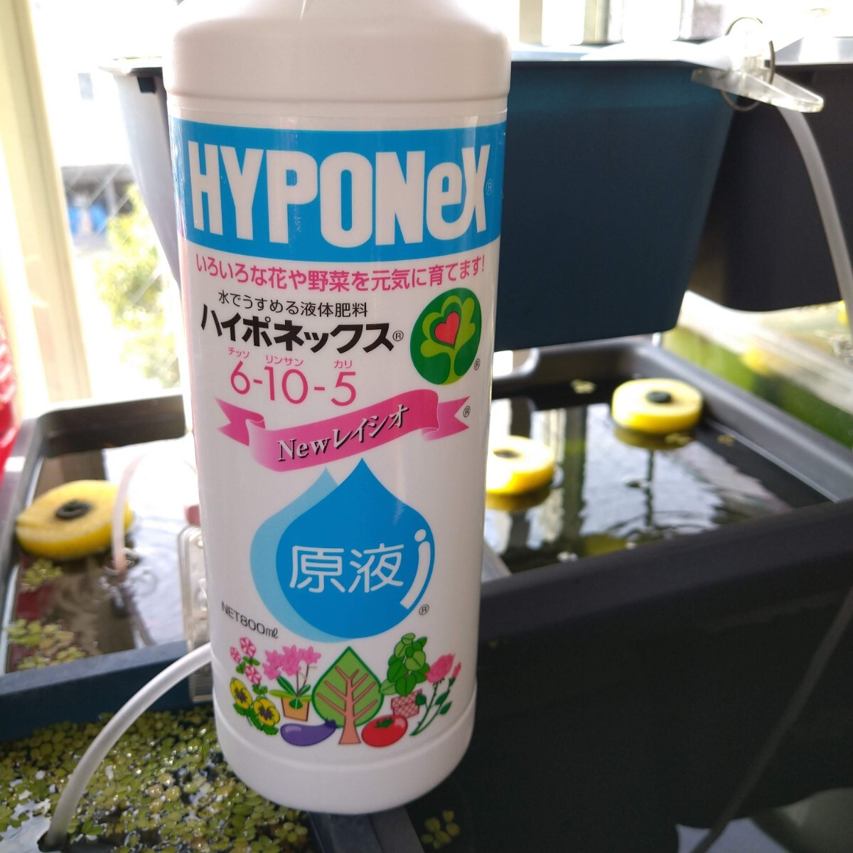 細かく分類すると天然グリーンウォーターと生クロレラ水は別物になりますが、グリーンウォーター(青水)を作るに当たって一番手っ取り早いのが生クロレラですが、生クロレラは多少高額で名前の通り“生”なので冷蔵庫保管で、更に1ヶ月間ぐらいしか長持ちしません。しかしハイポネックスは使用後キャップを閉め、直射日光や高温となる場所を避ければ15年以上も成分変化が起きず使用可能とされています。