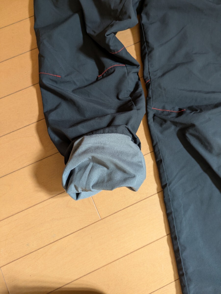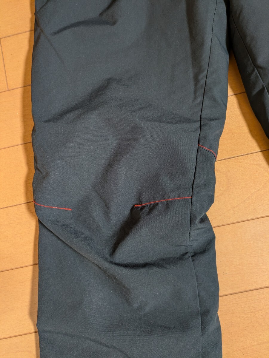 膝はゆるみのある設計です。背面側の膝下に3ストライプデザインです。