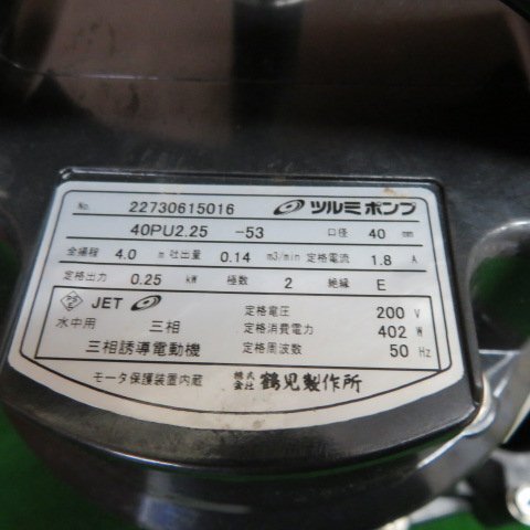 型式:40PU2.25-53 メーカー:鶴見製作所 【仕様】 口径:40mm 定格出力:0.25kW 全揚程:4.0m 吐出量:0.14m3/min 定格電圧:三相200V 周波数:50Hz 2022年製 開封済み、取扱説明書欠品、外箱痛みありの保管品となります。 未使用品ではございますが、保管中のキズ・汚れ等はご容赦下さい。 画像の物が全てになります。 他に付属品等はございません。 上記の事をご理解・ご了承の上で ご入札をお願い致します。 その他 ご不明な点等ございましたら ご入札前に お気軽に ご質問下さい。 オークション終了日 当日は 午後5時迄に ご質問は お願い致します。 夕方以降に ご質問等 お問い合わせ頂きましても お応えするのが 翌営業時間中になりますので ご了承ください。 *詳細につきまして ご質問されましても お答えできない場合もございます。 |