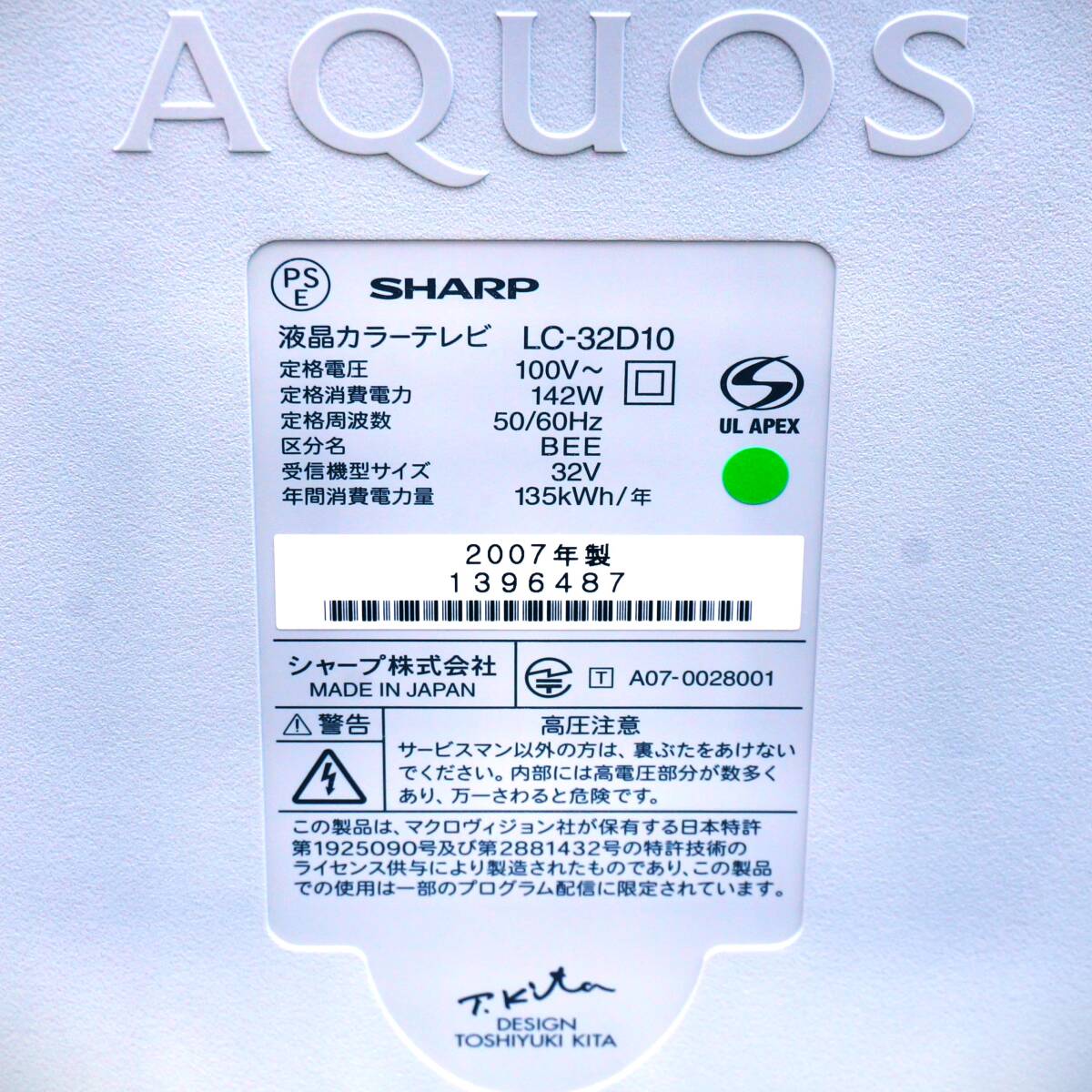 【希少!ホワイトモデル】SHARP シャープ AQUOS アクオス 32型 液晶テレビ LC-32D10 リモコン付属 亀山モデル 高精細ASVパネル