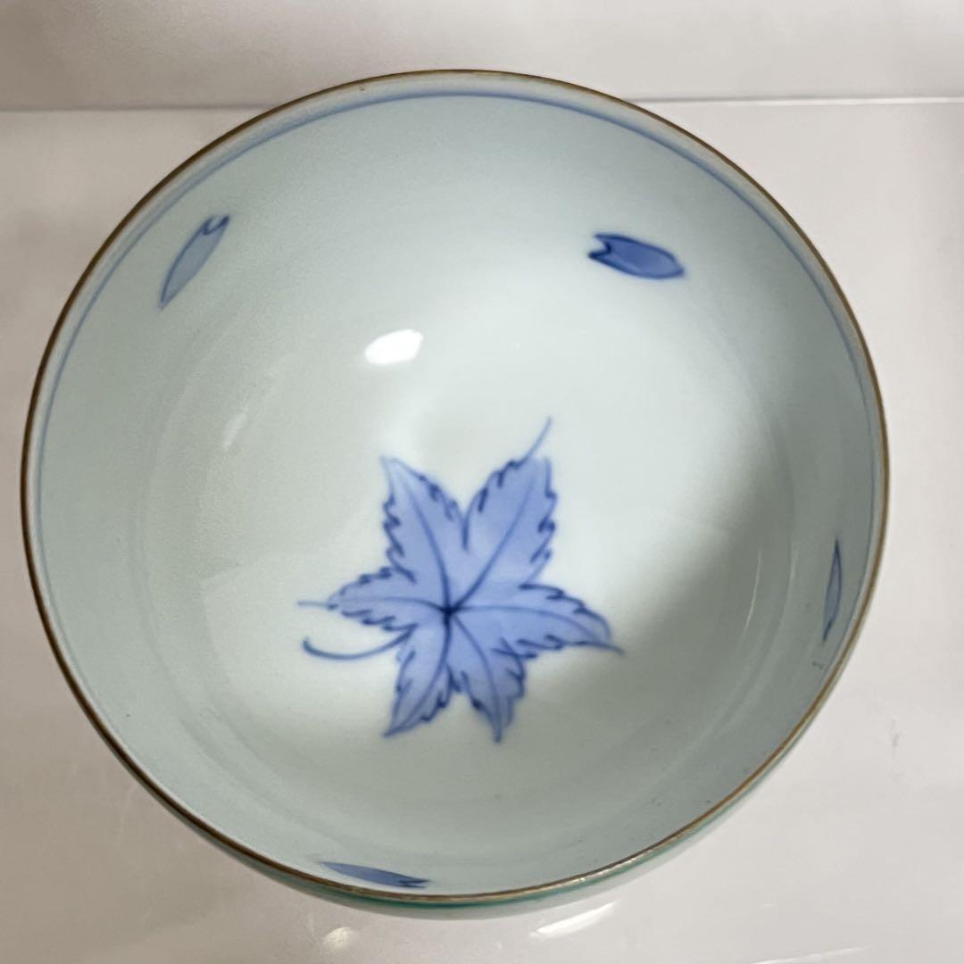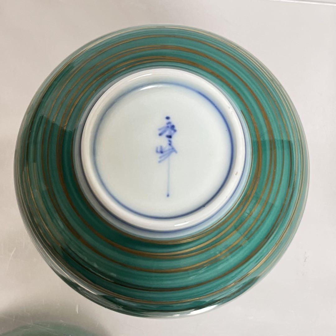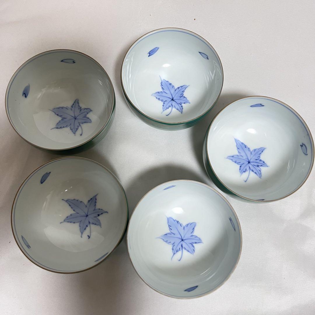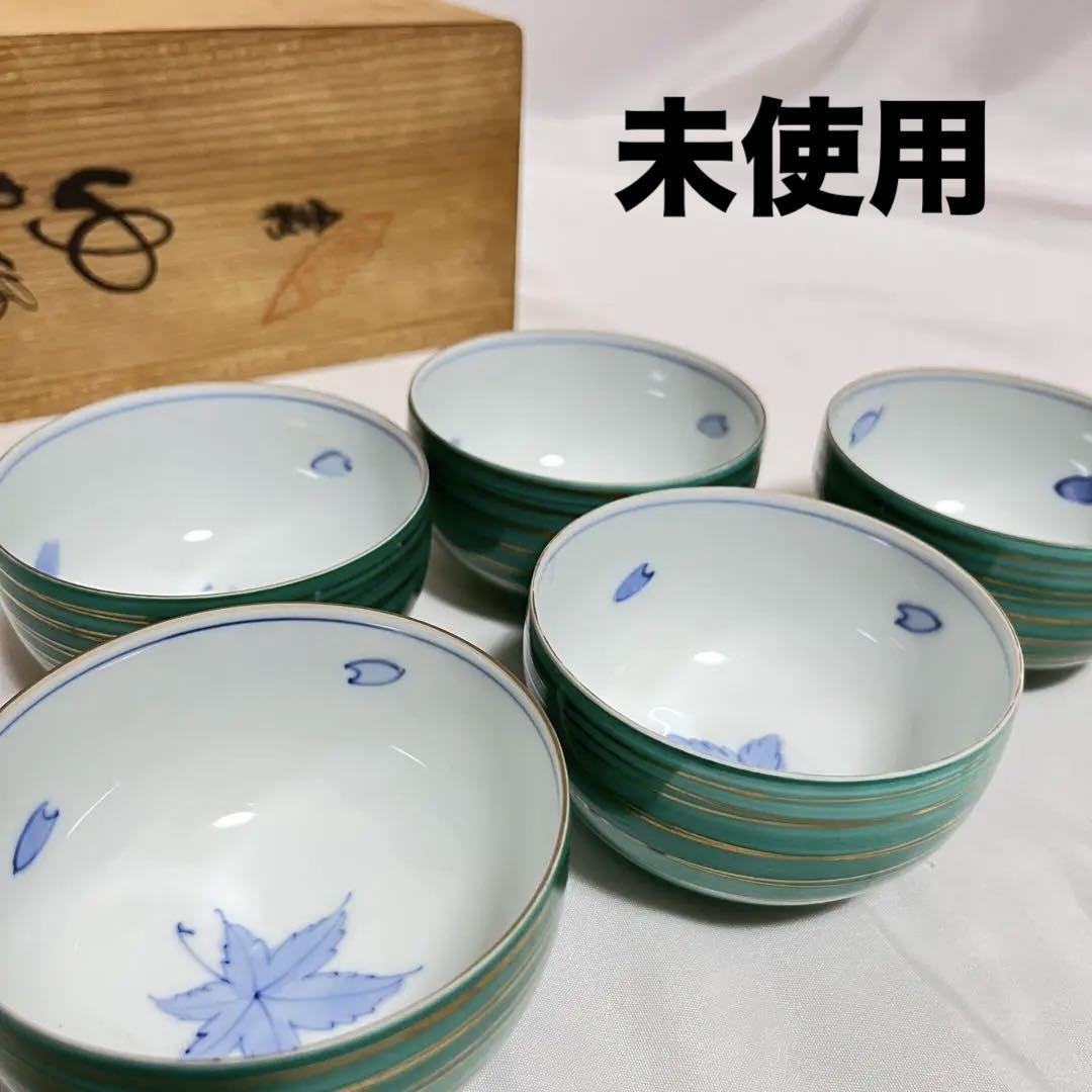 未使用 有田焼 金彩 湯呑揃 5客 永峰窯 もみじ さくら 緑釉