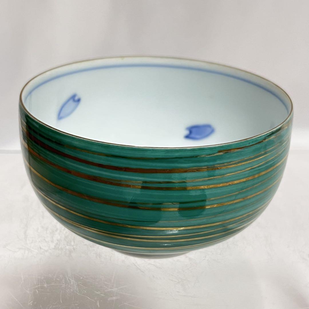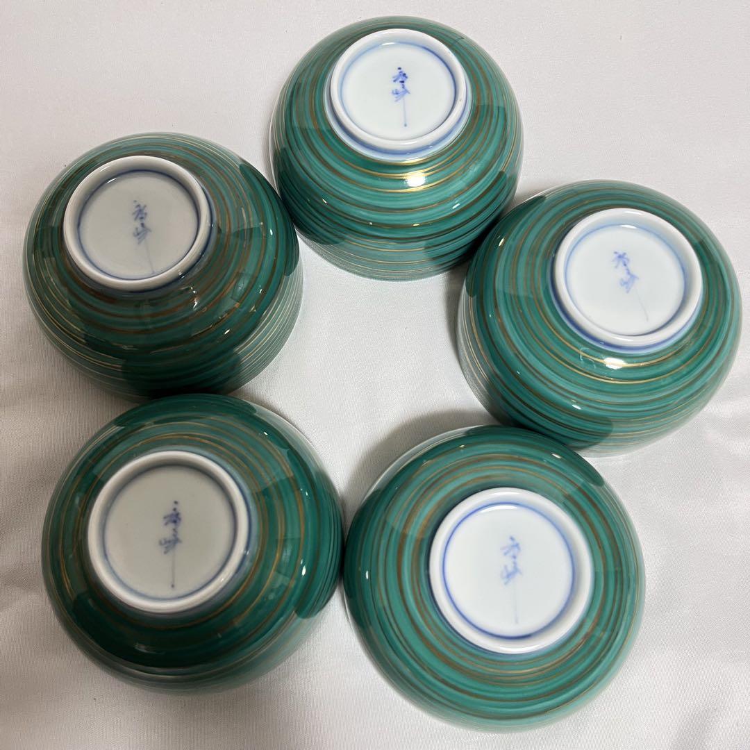緑釉に金彩施された美しい湯呑 5客セットです。