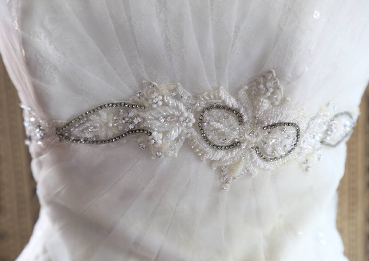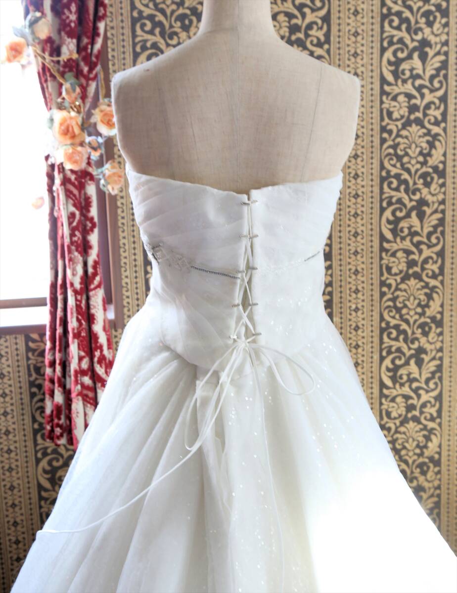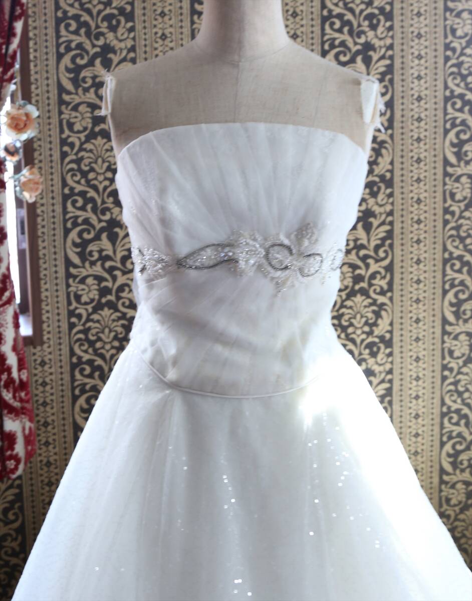 式場等で使用されるクラスのドレスはレンタルするだけでも高額な品ですし、生地が多く繊細な商品ですので、多少の糸引き・ビーズ取れ・小傷など多少の事はご理解ください。