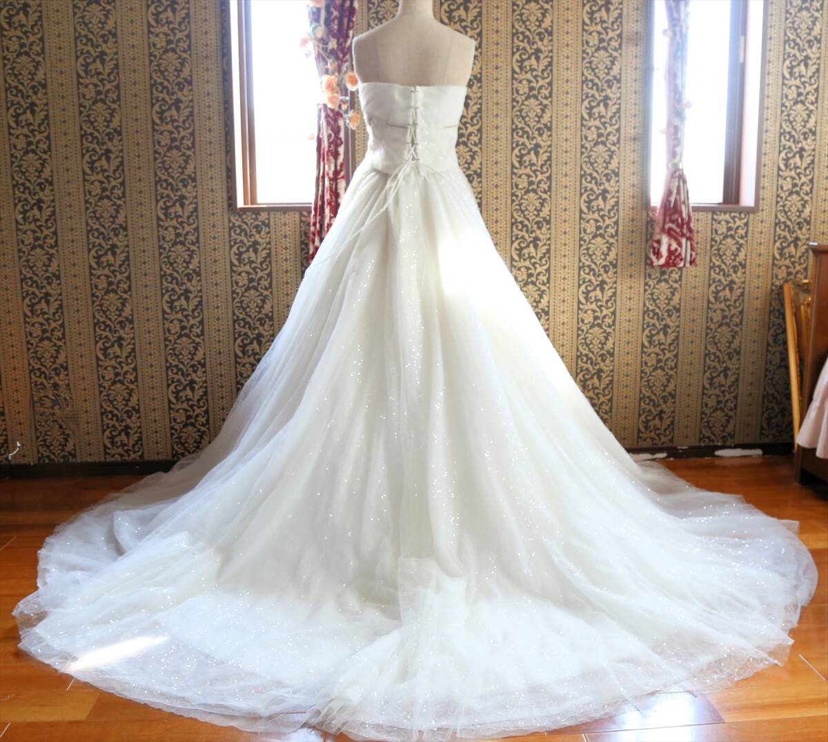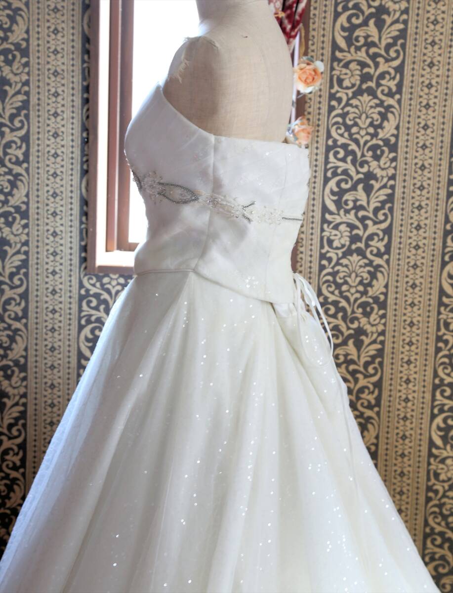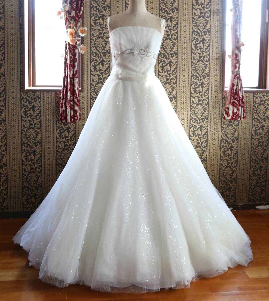 式場等で使用されるクラスのドレスはレンタルするだけでも高額な品ですし、生地が多く繊細な商品ですので、多少の糸引き・ビーズ取れ・小傷など多少の事はご理解ください。