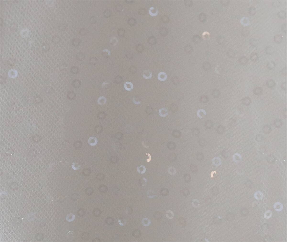 生地はチュールで、内側の生地にクリアのスパンコールが施されており、照明を浴びるとキラキラと反射します