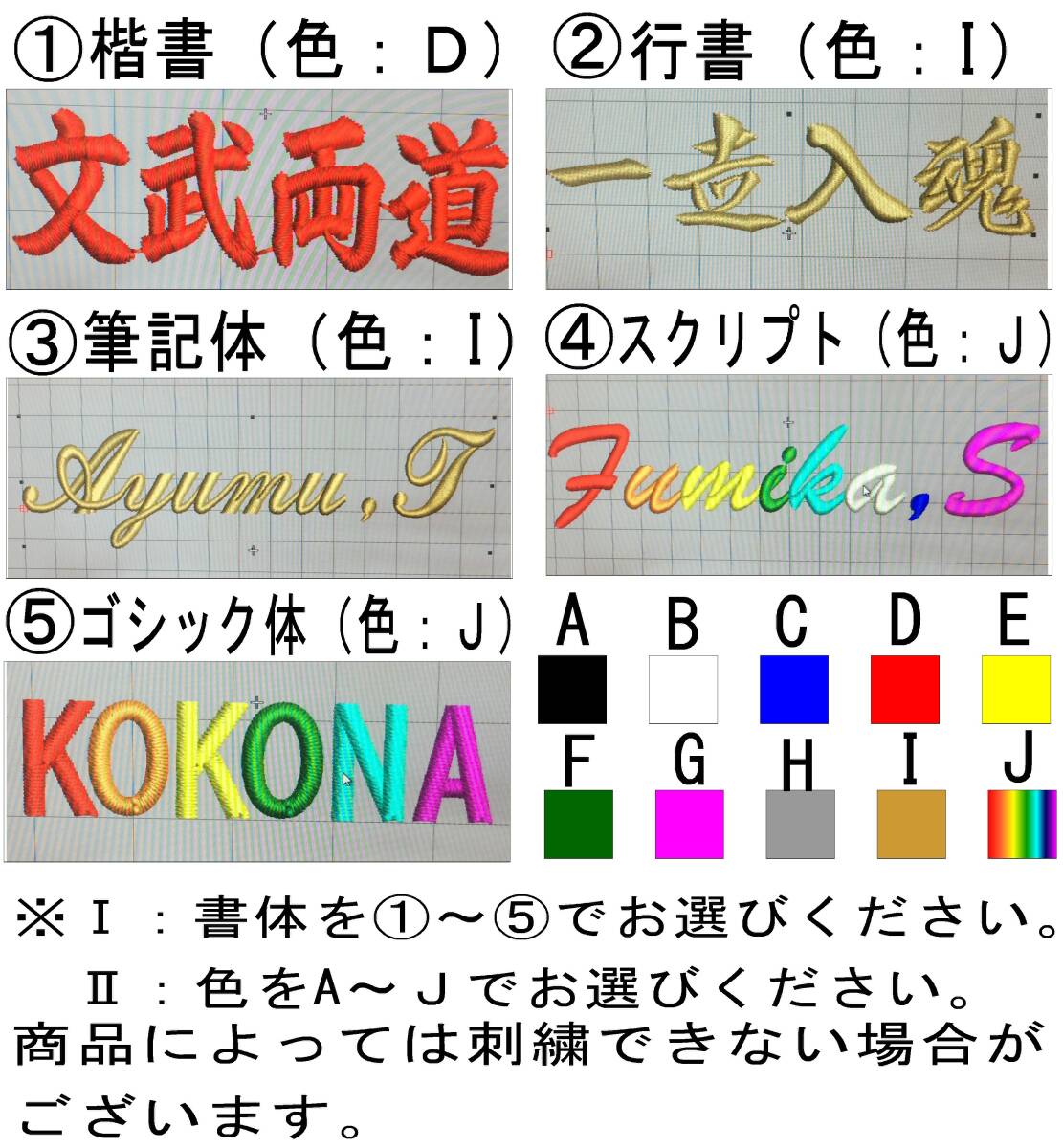II.刺繍糸色 【   】  A.黒 B.白 C.青またはネイビー D.赤 E.イエロー F.グリーン G.ピンク H.シルバー                          I.ゴールド J.レインボー)